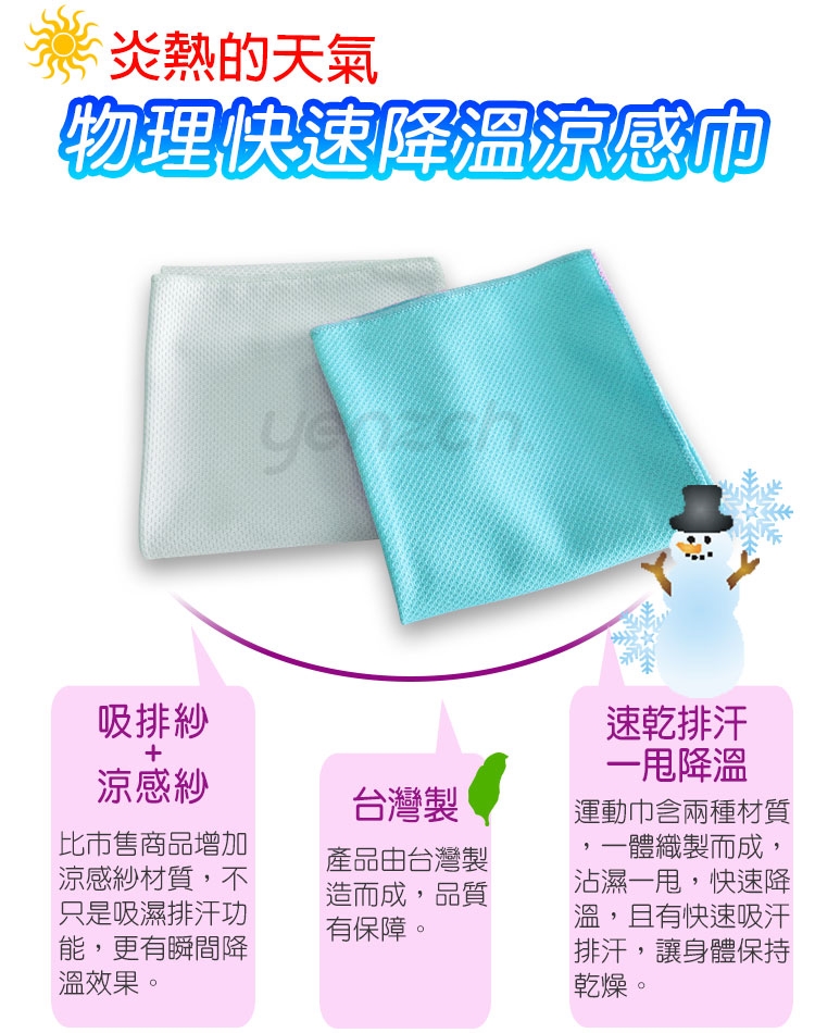 品名:Yenzch 冰涼速乾運動方巾/攜帶款