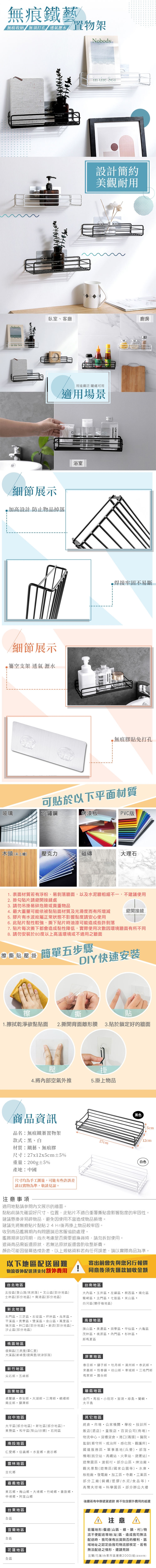 使用無痕貼系列收納架請盡量避免放置易破碎物品,以免