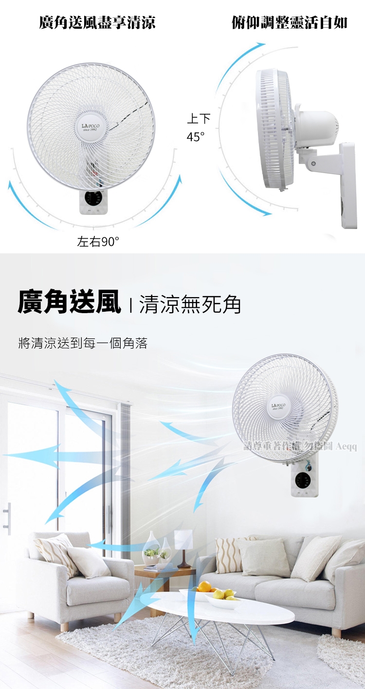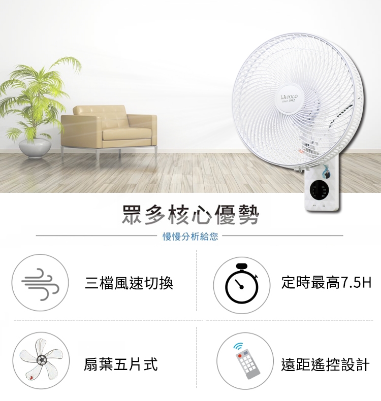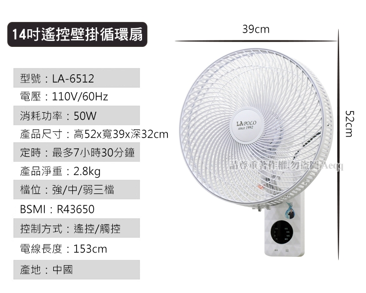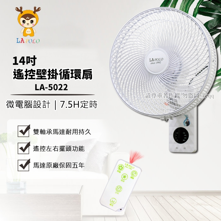 【LAPOLO 藍普諾】14吋遙控壁掛循環扇(LA-5022)