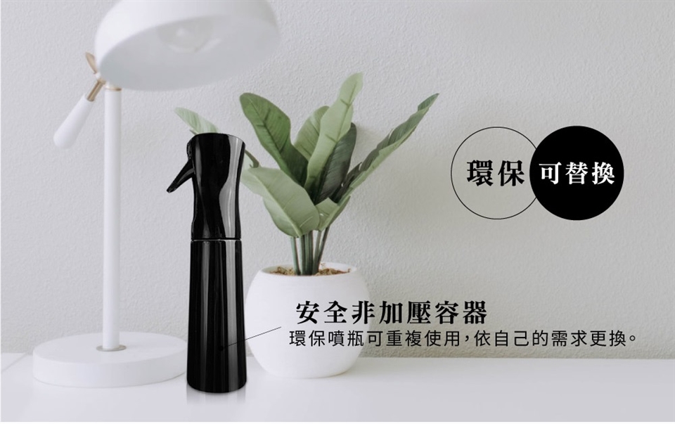 360度環保噴霧瓶,可重複使用,也可依自己的需求更換 。