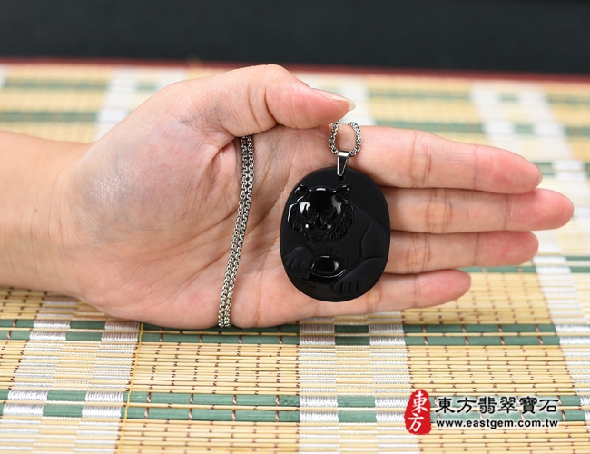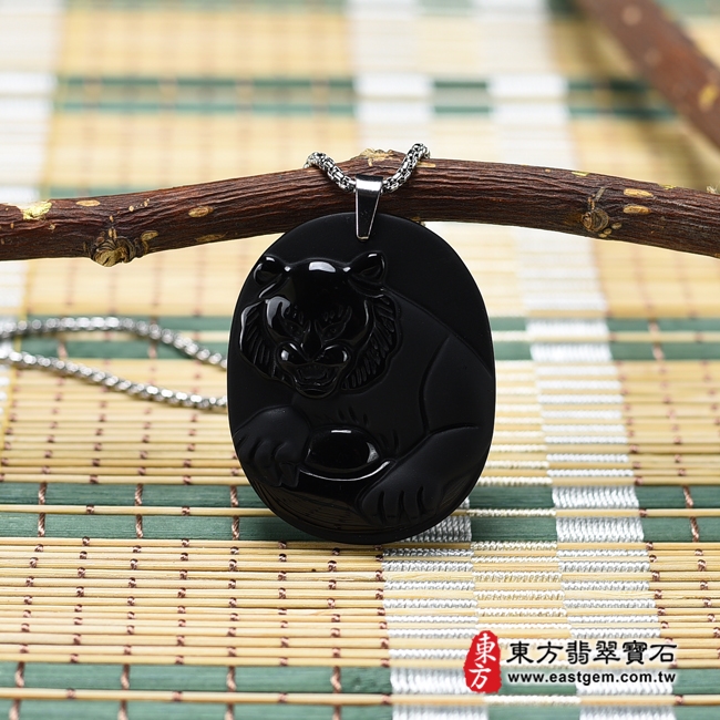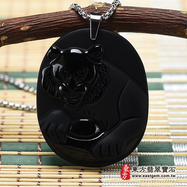 商品名稱:黑曜石虎項鍊玉珮(虎虎生風:虎牌黑曜石虎玉珮、黑曜石虎玉墜、虎十二生肖項鍊)。全黑黑曜石虎,TR117。客製化訂做各種黑曜石虎吊墜玉珮項鍊。★東方翡翠寶石保證卡