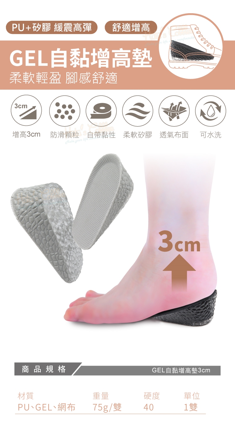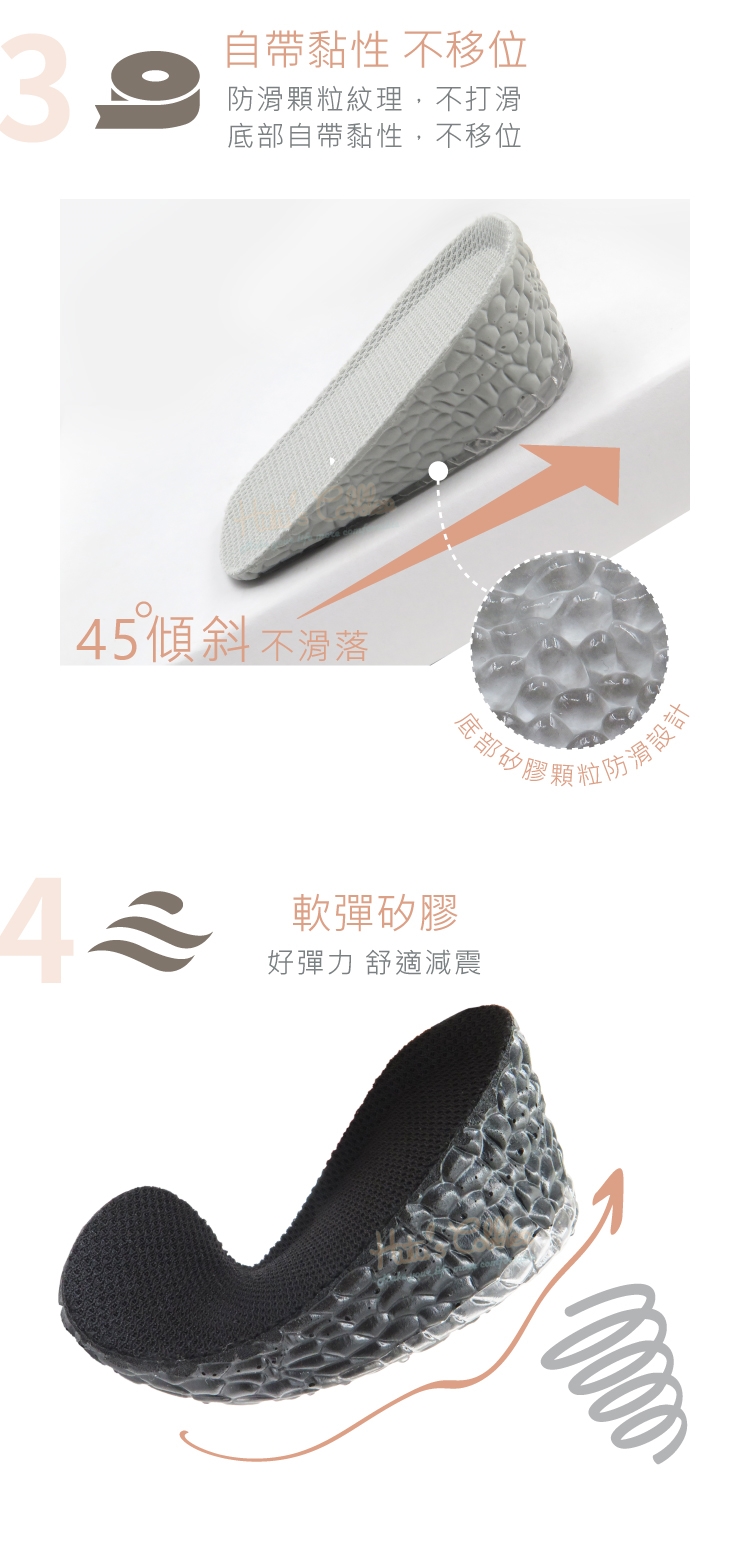 2.顆粒設計矽膠增高墊,高彈力,更舒適