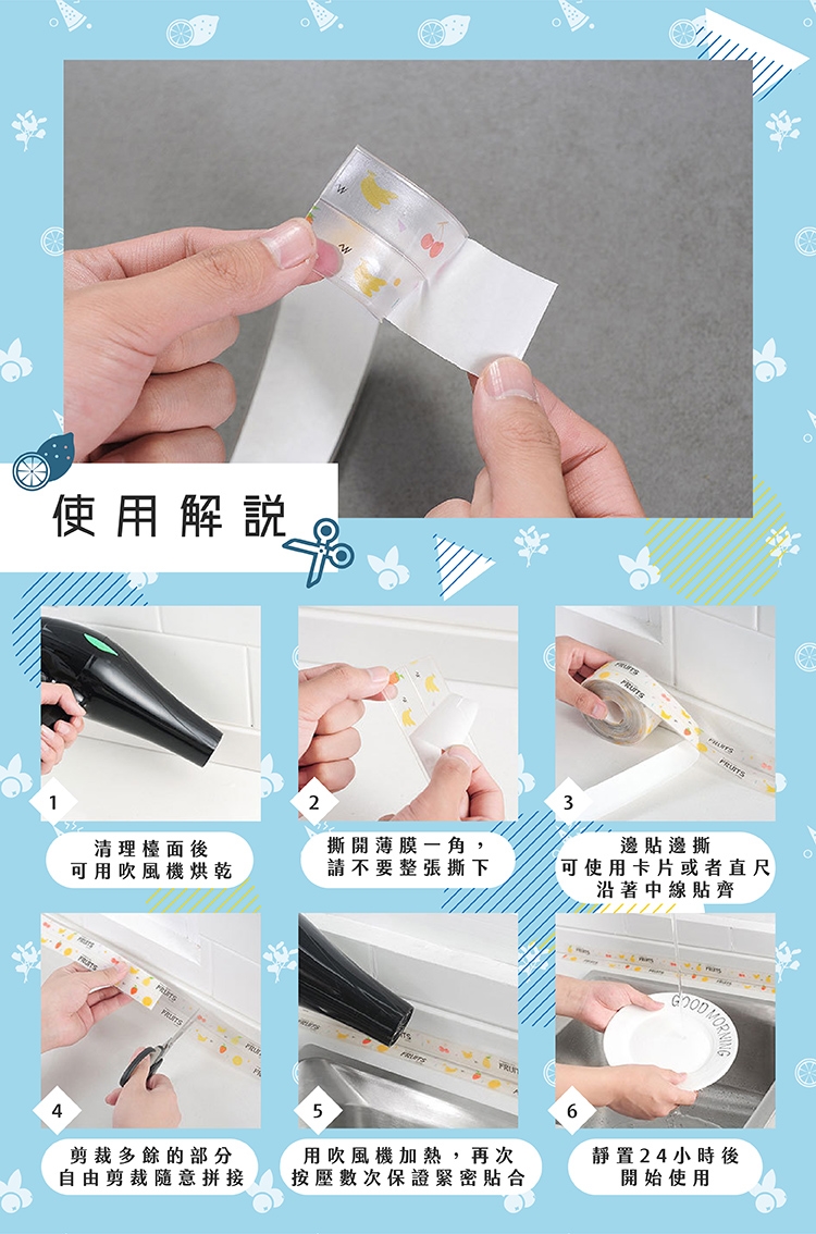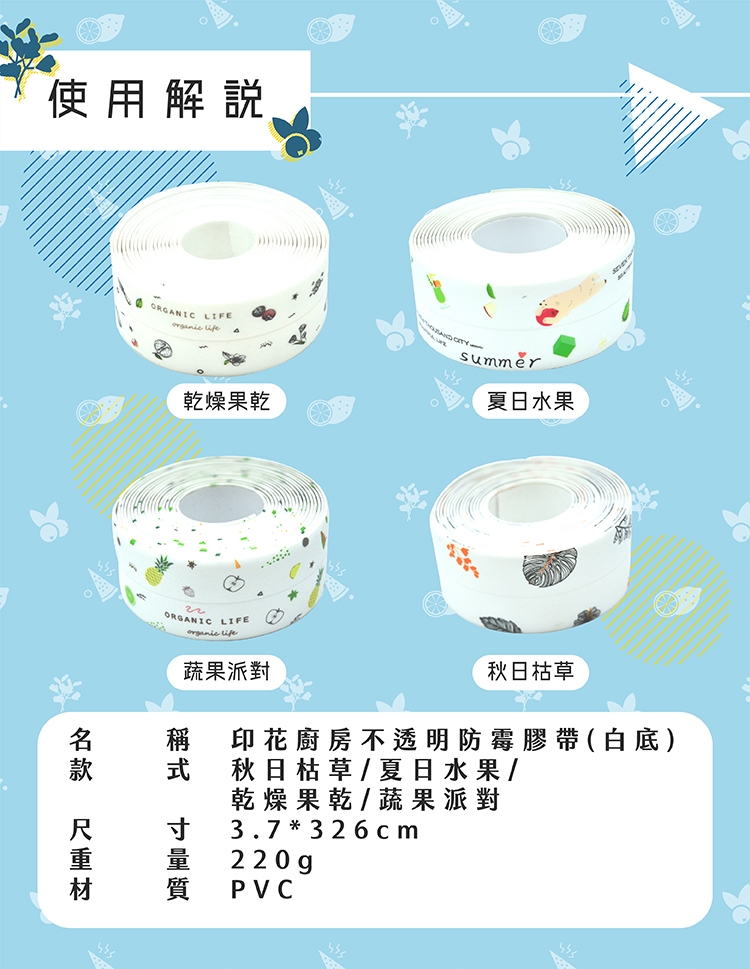 印花防霉膠帶白底遮污漬,整潔廚房浴室