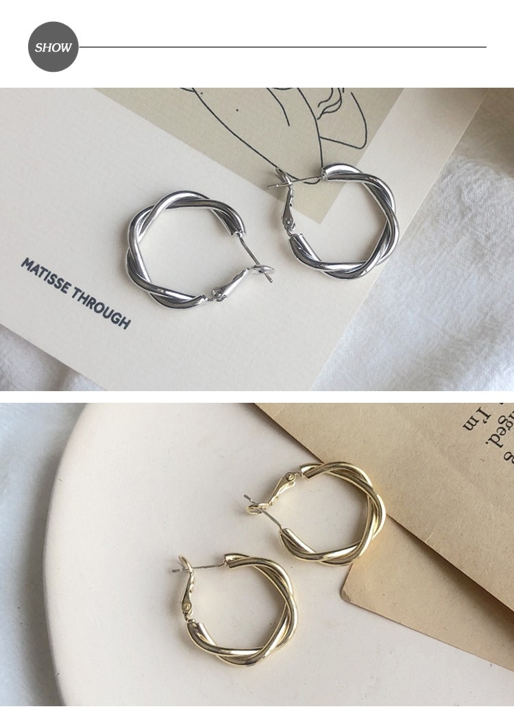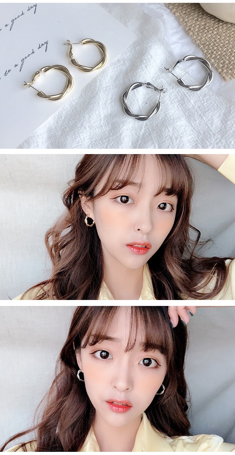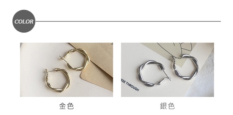 【00:00】韓國設計S925銀針冷淡風經典氣質麻花扭結C圈耳環 (2色任選)