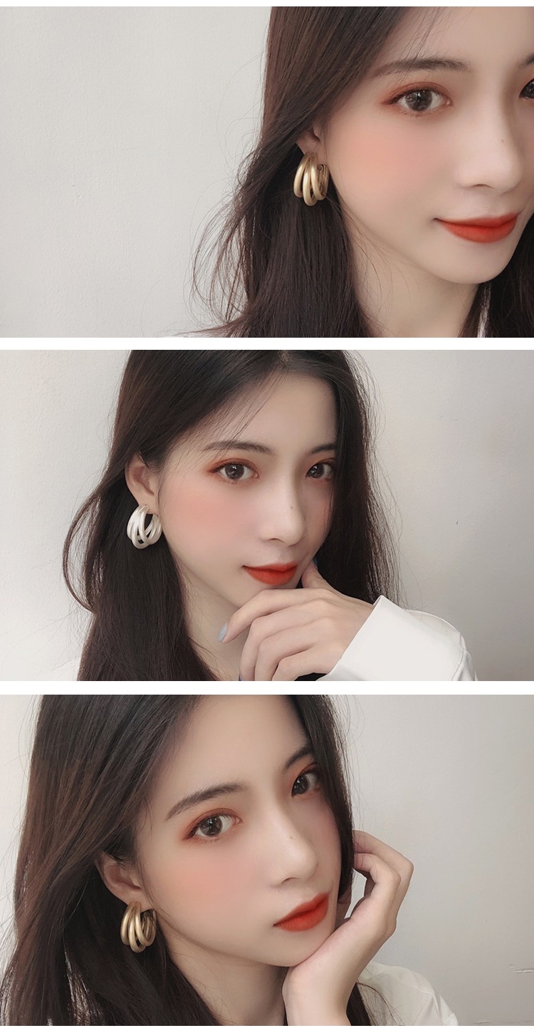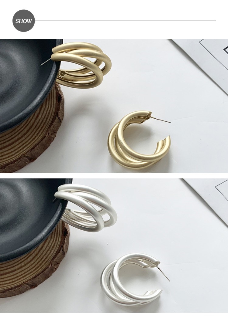 【00:00】韓國設計S925銀針磨砂霧金質感多層次C圈耳環 (2色任選)