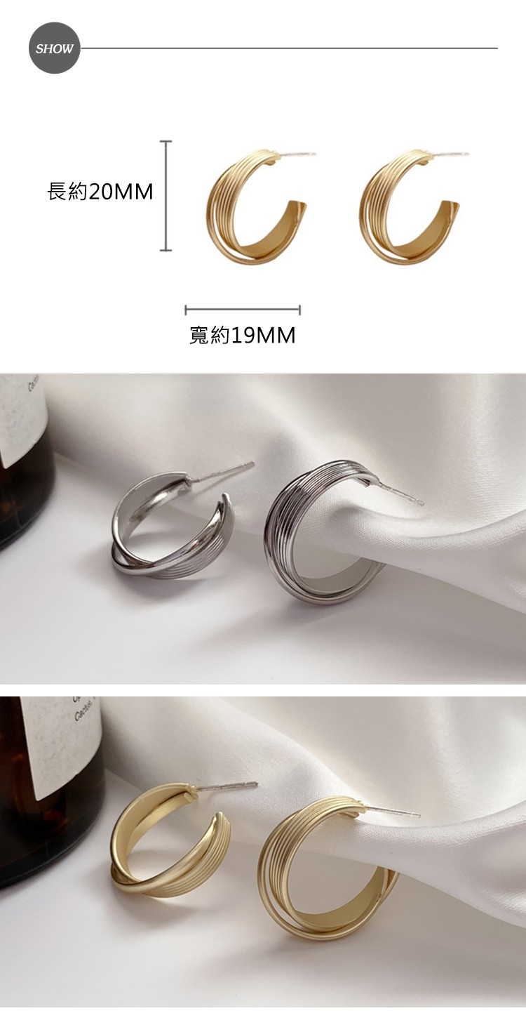 【00:00】韓國設計S925銀針復古歐美金屬線條C圈耳環 (2色任選)