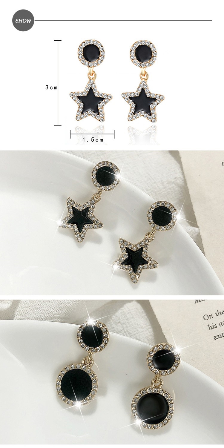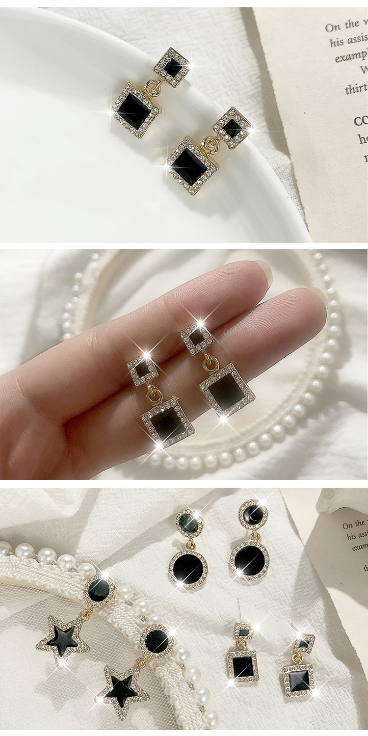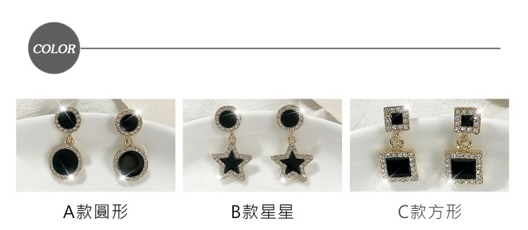 【INES】韓國設計個性幾何黑色滴釉美鑽造型耳環 (3款任選)