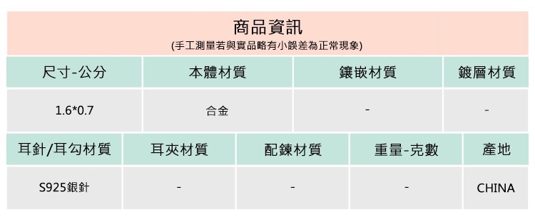 ◆耳環屬個人衛生用品,一經開封恕不退換。