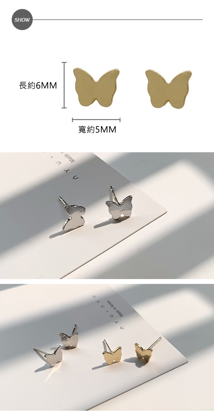 【00:00】韓國設計S925銀針極簡迷你蝴蝶耳釘 (2色任選)