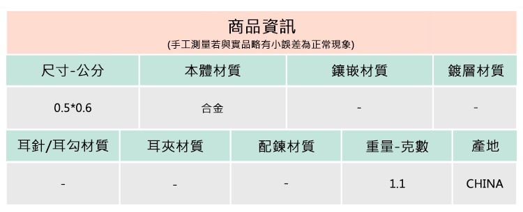 ◆合金飾品一經使用可能隨時間失去光澤或褪色,此為正常物理現象,妥善使用保存可延長飾品壽命。
