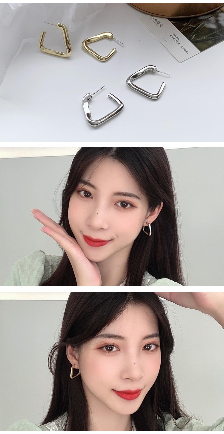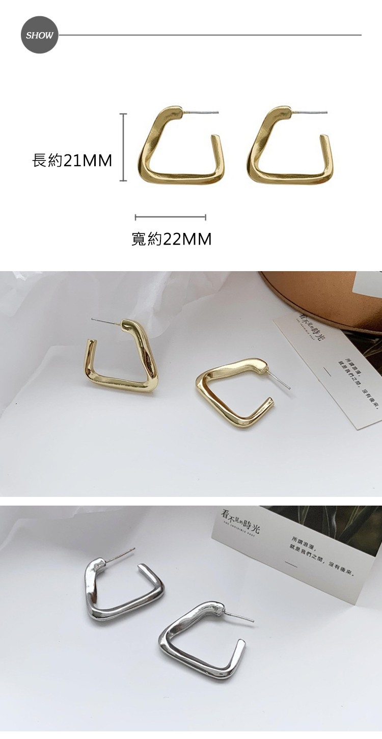 【00:00】韓國設計S925銀針時尚歐美幾何三角線條金屬耳釘 (2色任選)