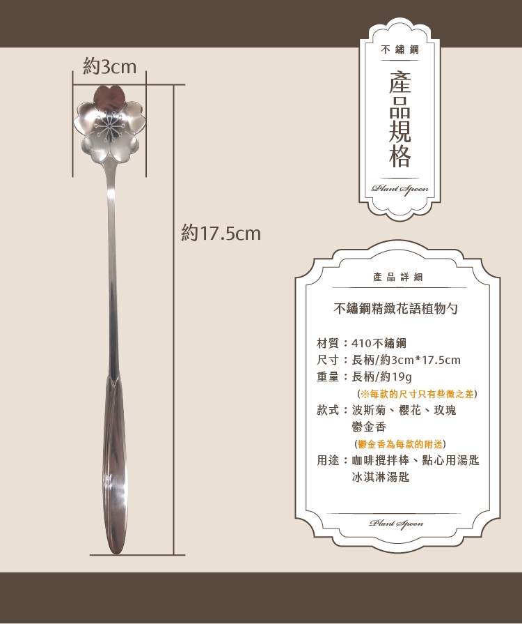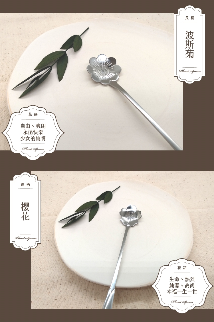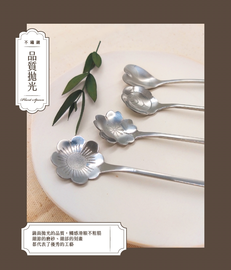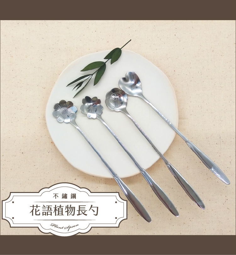 不鏽鋼精緻花語植物長勺(4入贈鬱金香)