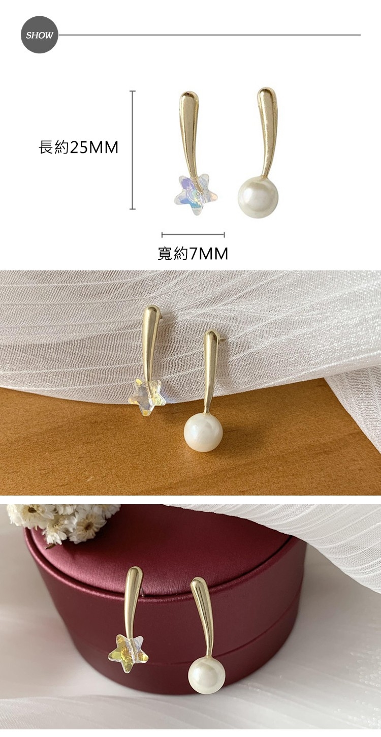 【MISS KOREA】韓國設計S925銀針小巧可愛星星珍珠造型耳釘