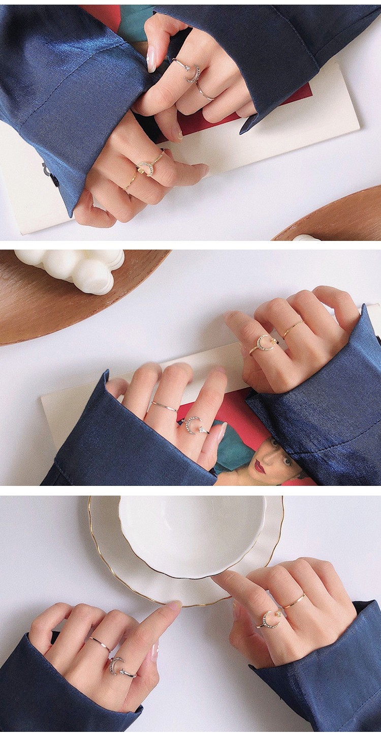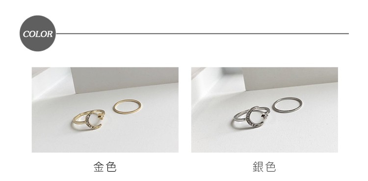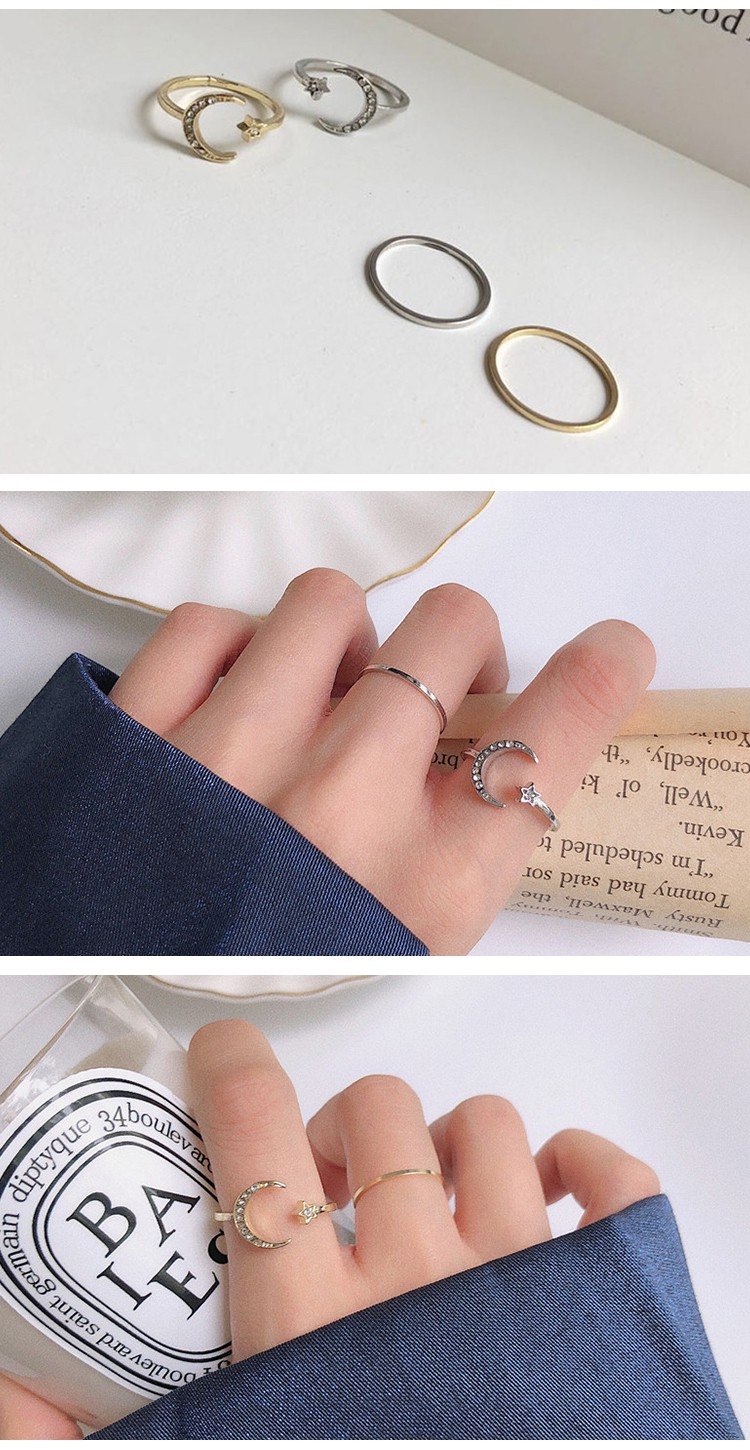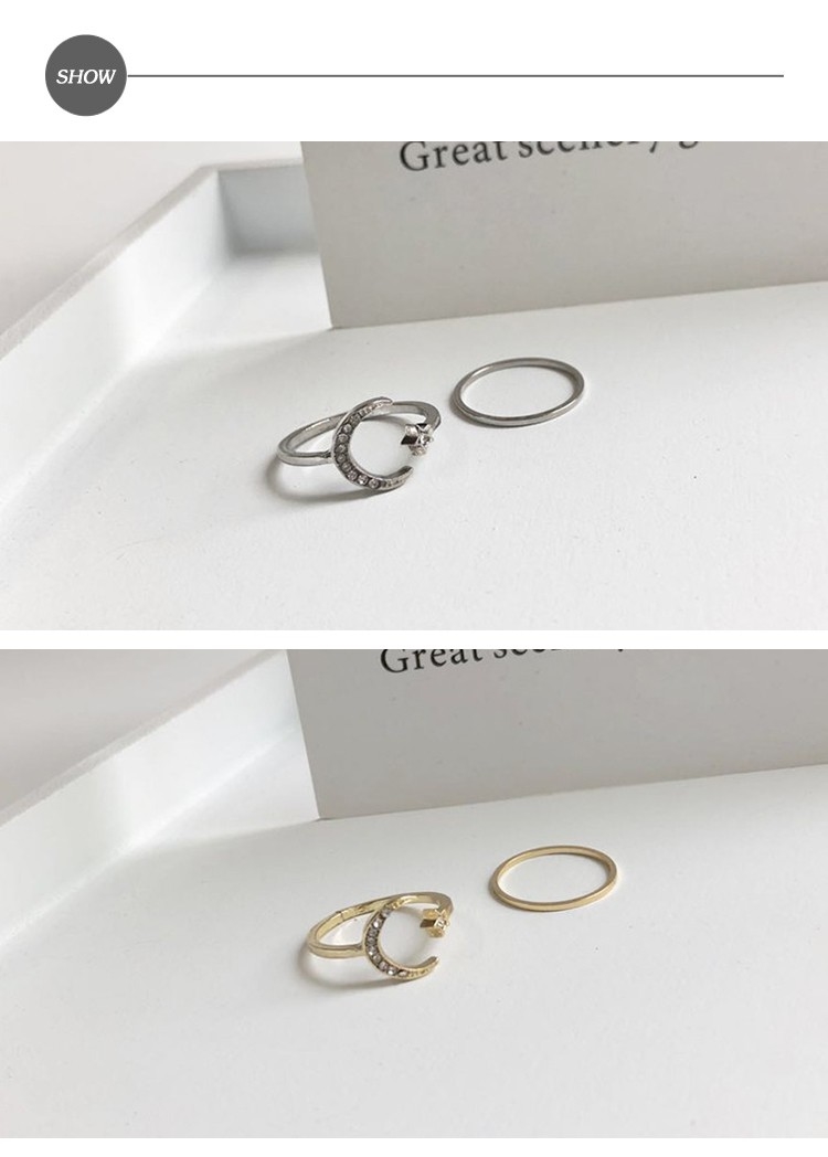 【MISS KOREA】韓國設計星星月亮微鑲水鑽細圈戒指 (2色任選)