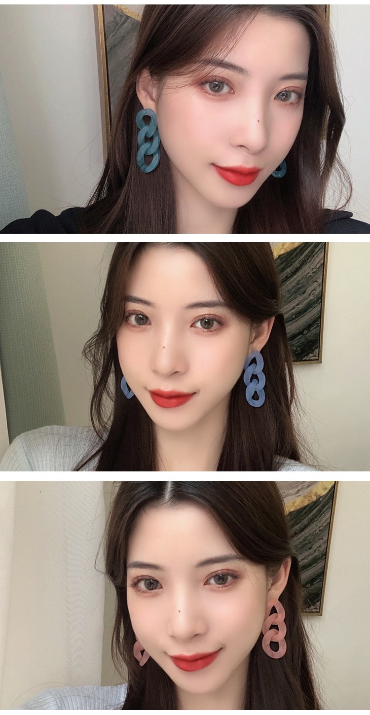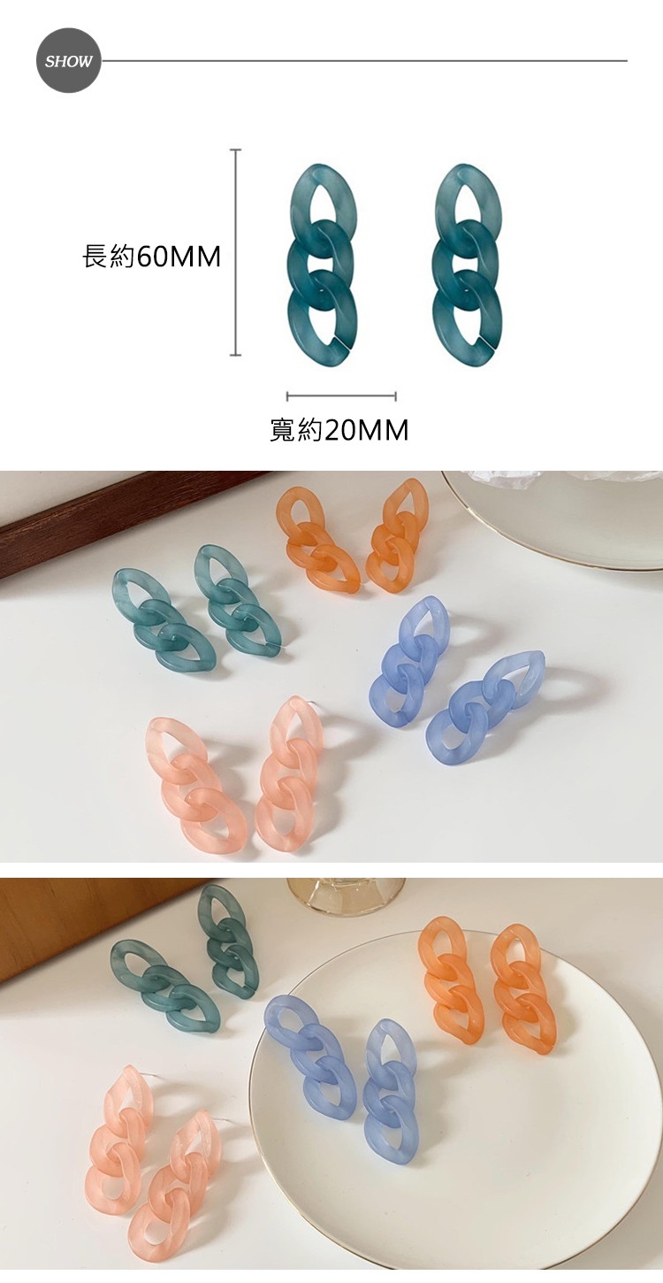 【INES】韓國設計S925銀針復古果凍色鍊條造型耳環 (4色任選)