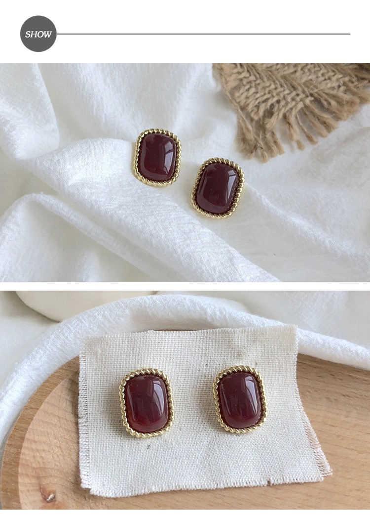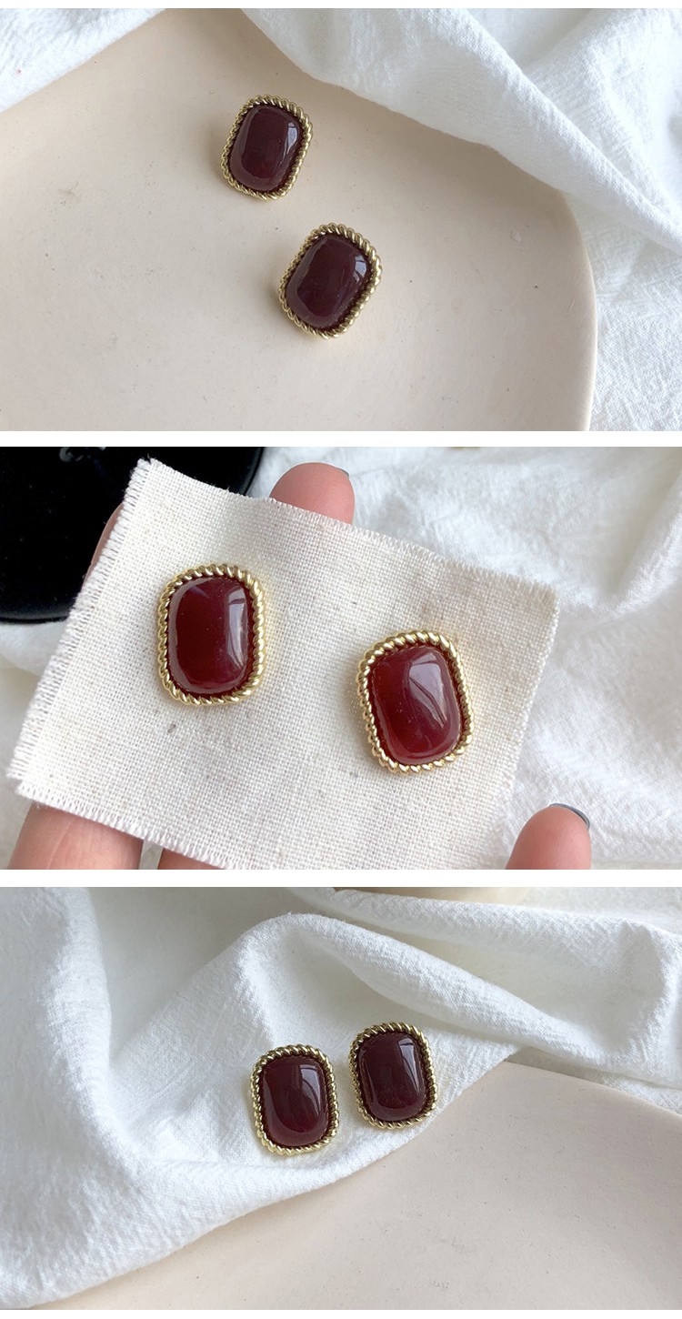 【INES】韓國設計S925銀針簡約優雅法式復古紅寶石造型耳環