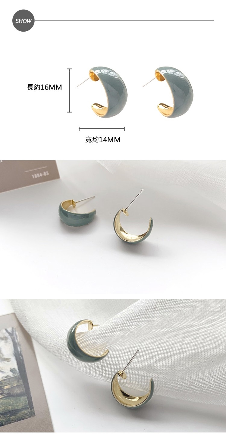 【INES】韓國設計S925銀針簡約復古造型C圈滴釉耳環