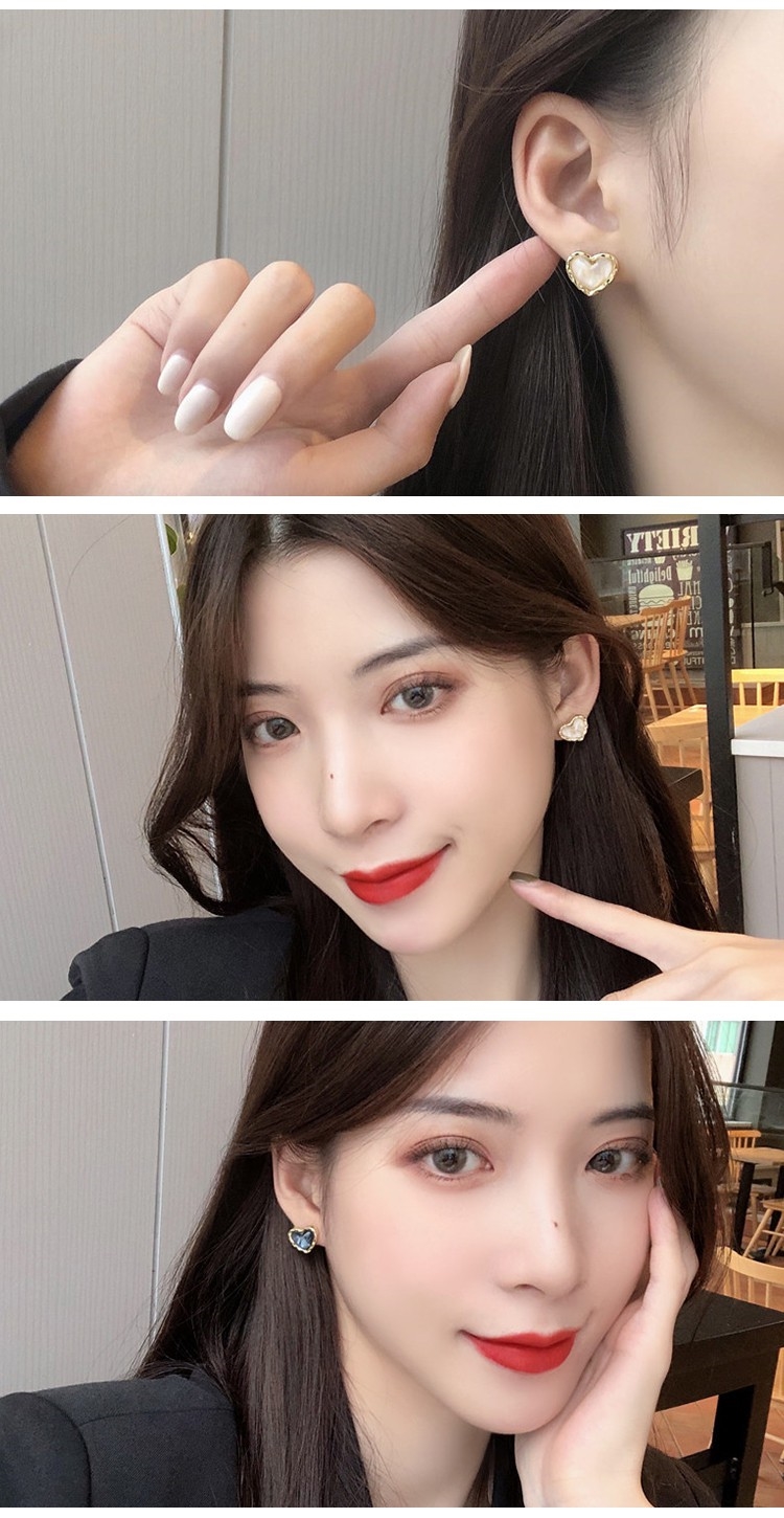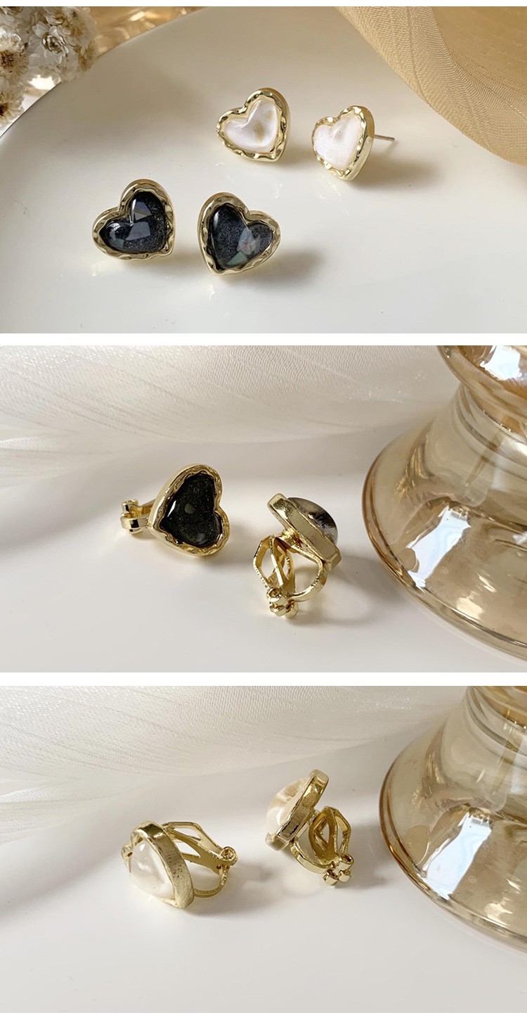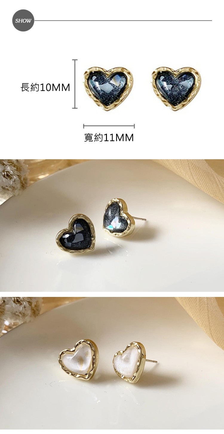【INES】韓國設計S925銀針簡約流沙金邊小巧桃心耳釘 (2色任選)