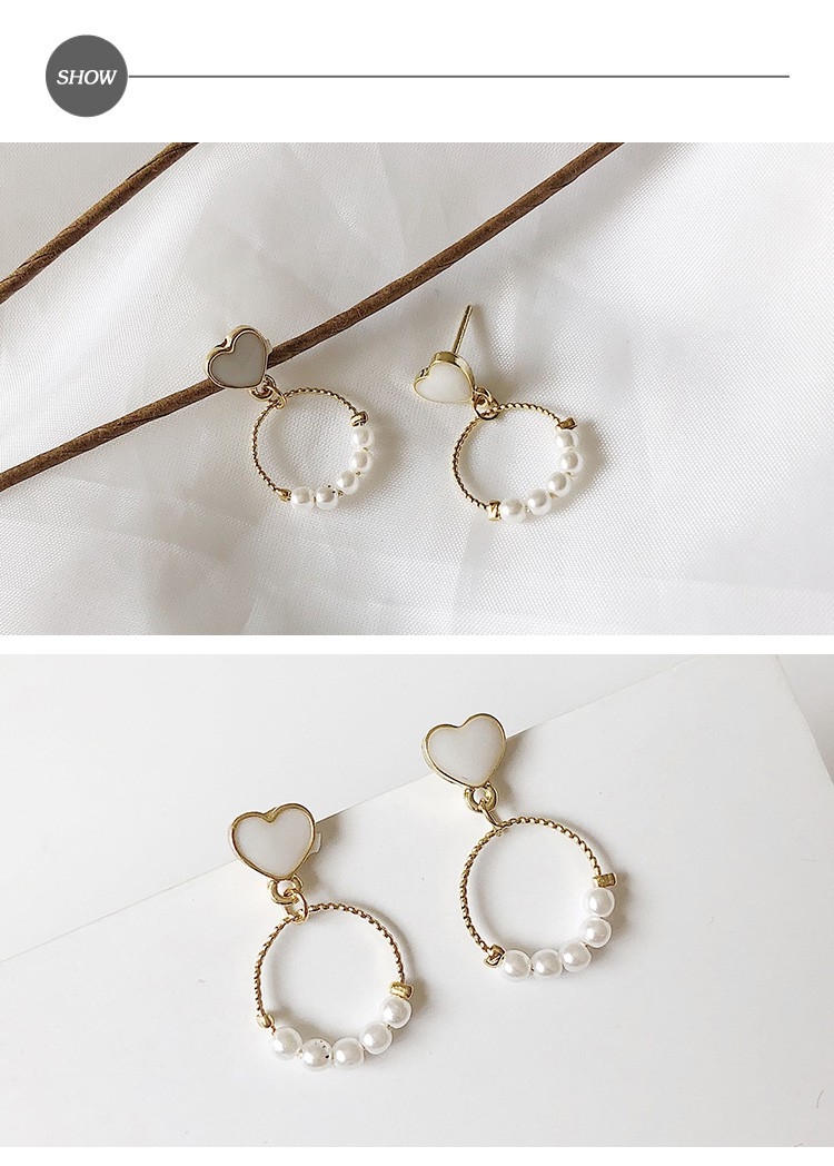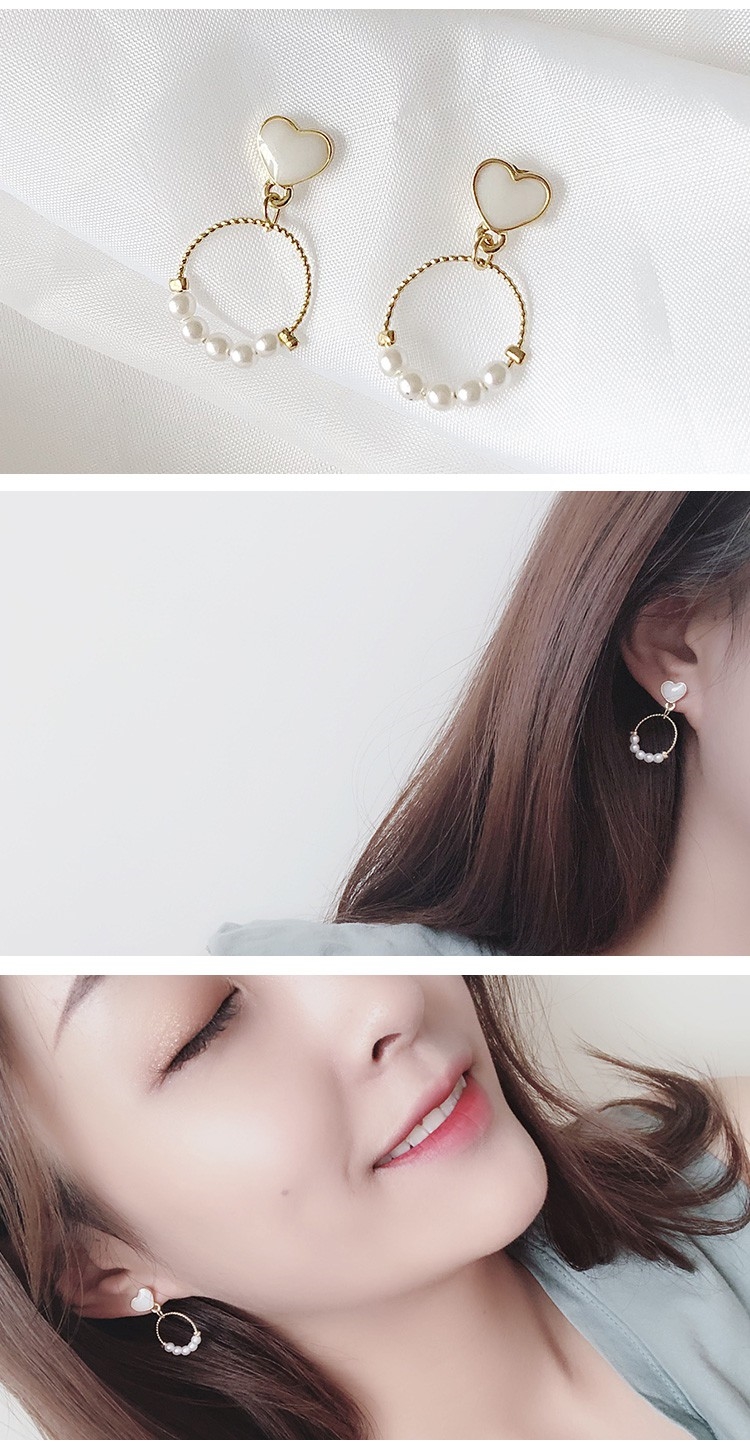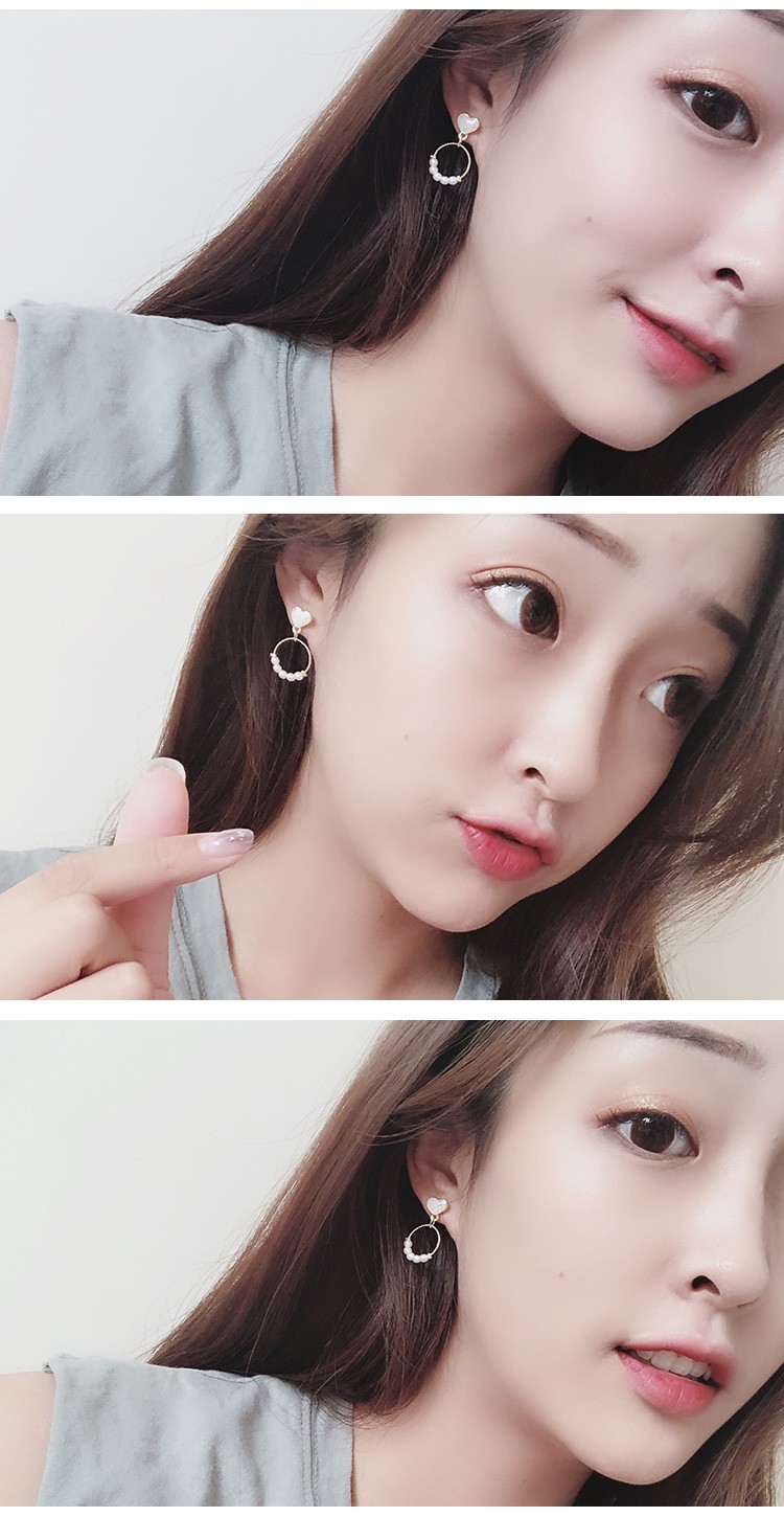 【MISS KOREA】韓國設計S925銀針甜美愛心滴釉珍珠圈圈耳環