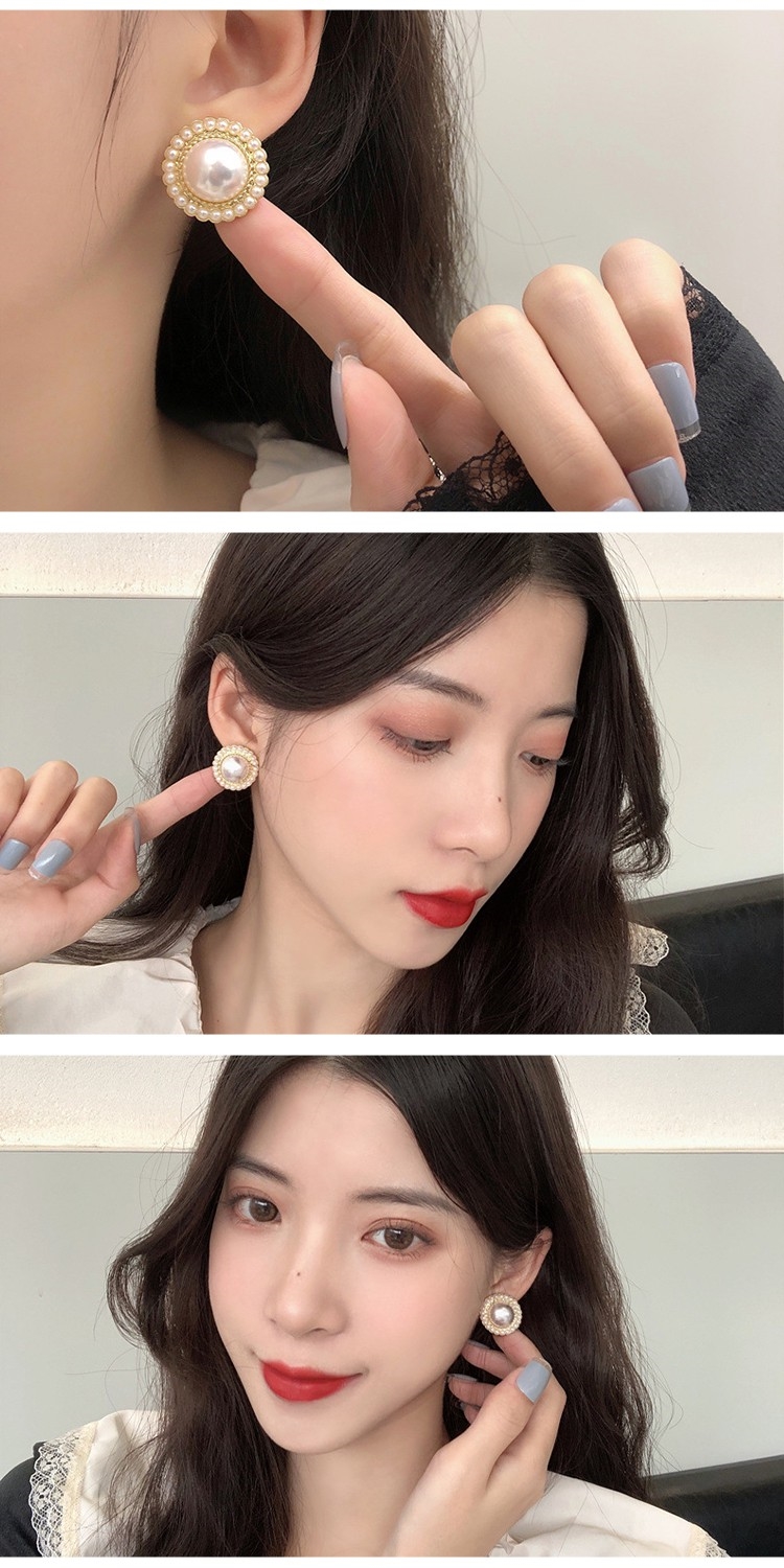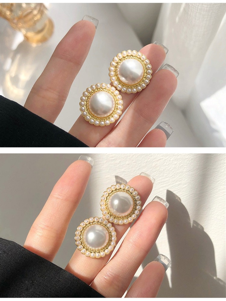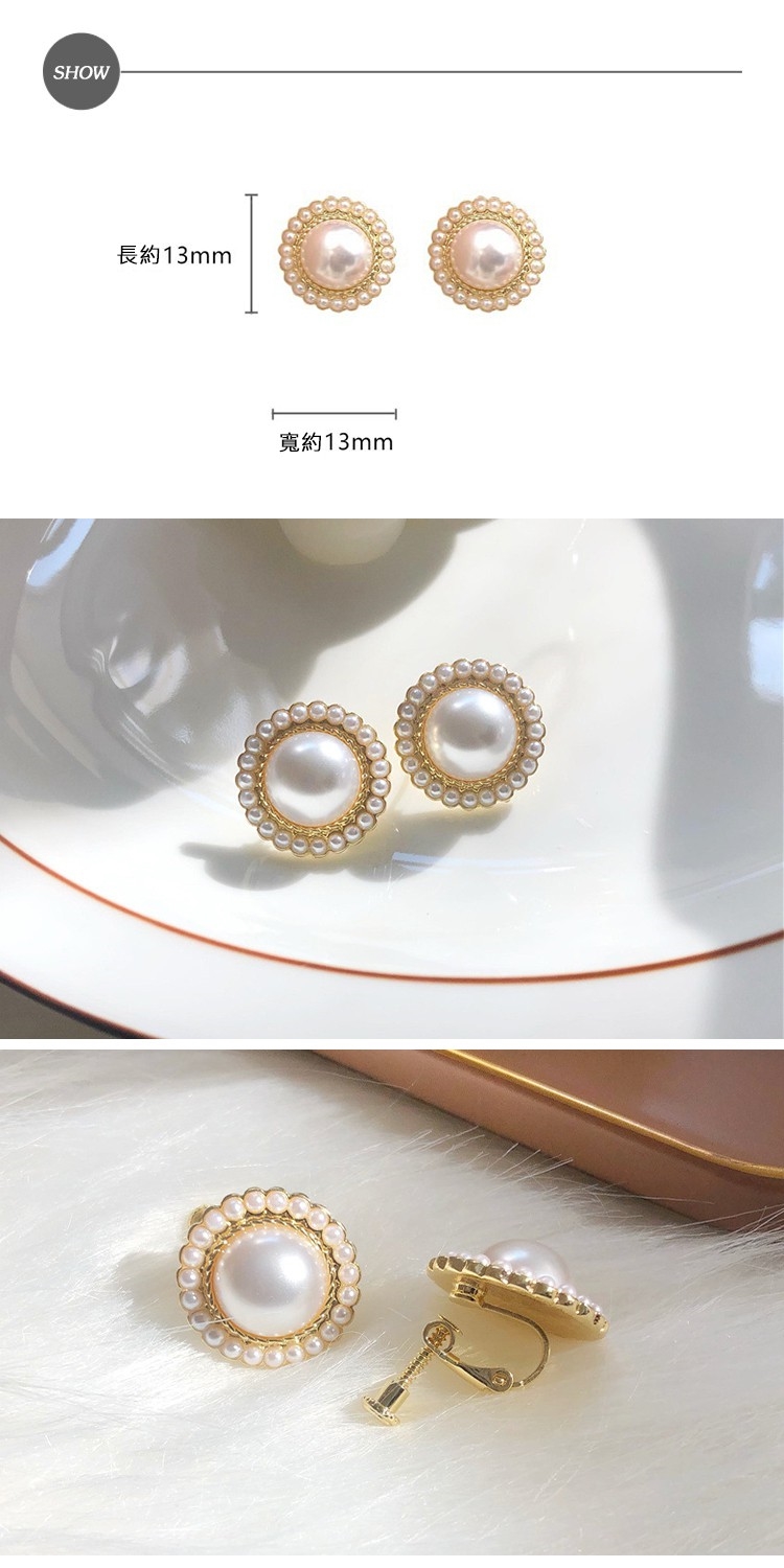 【INES】韓國設計S925銀針復古優雅赫本風圓形珍珠耳釘