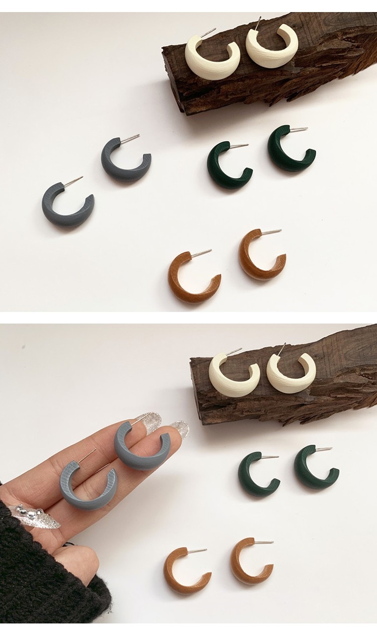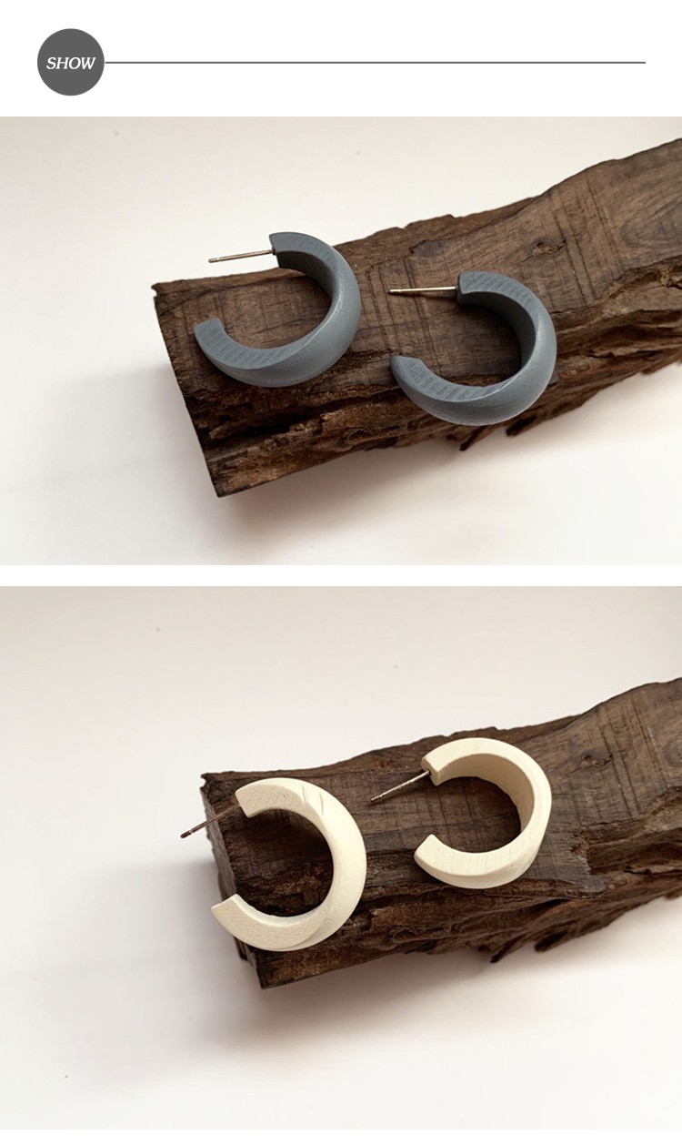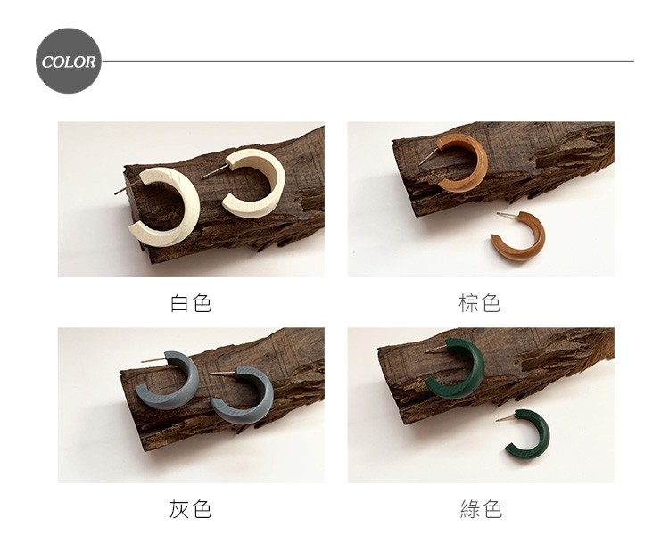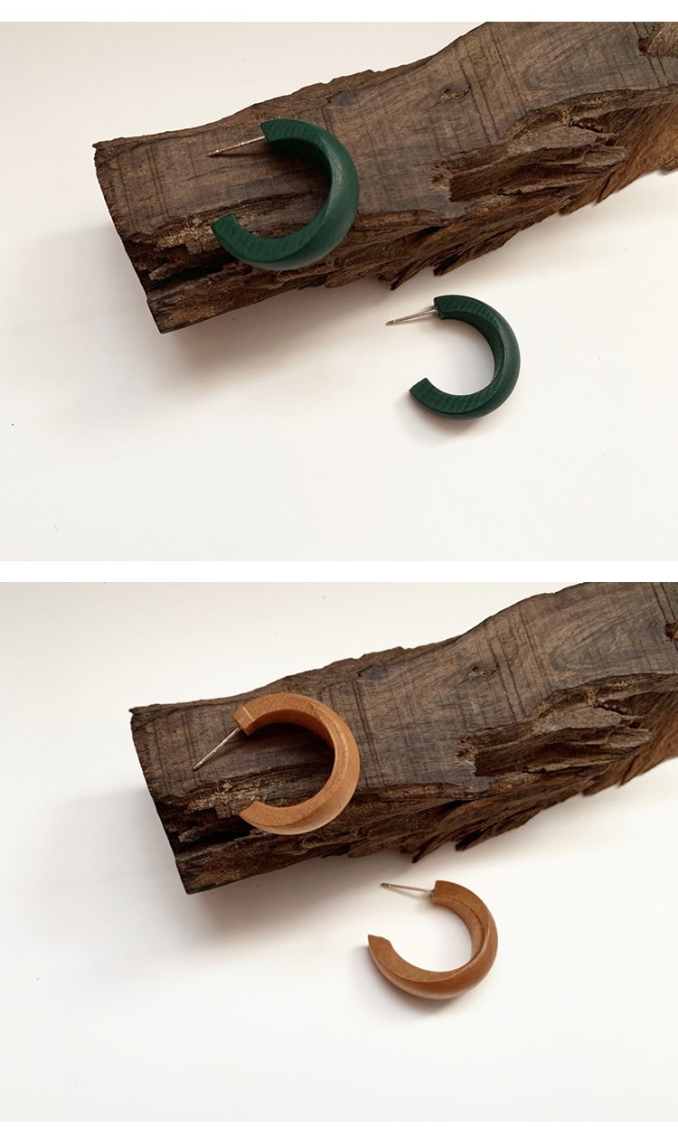 【INES】韓國設計簡約天然木質彩色C圈耳環 (4色任選)