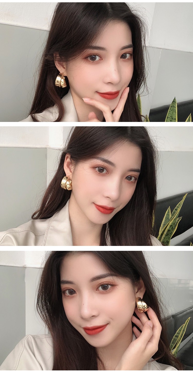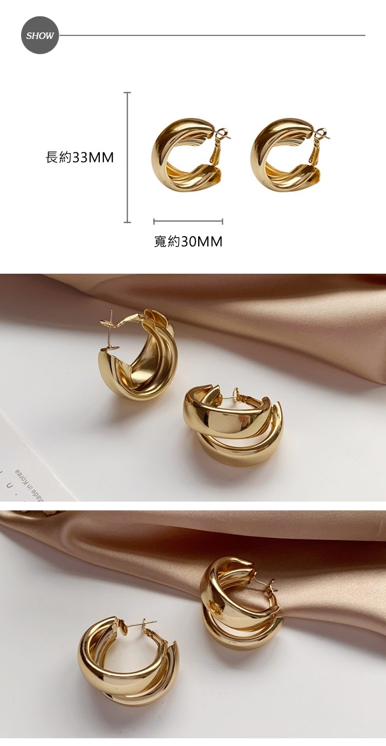 【00:00】韓國設計S925銀針歐美雙層金屬扭花大C圈耳環