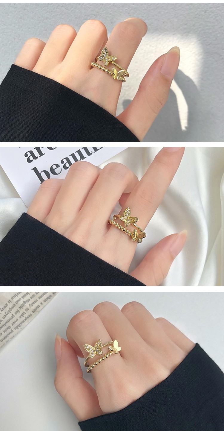 【MISS KOREA】韓國設計細緻微鑲美鑽蝴蝶造型開口戒