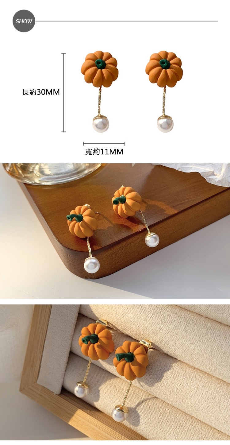 【MISA】韓國設計S925銀針兩戴法可愛小南瓜珍珠耳環