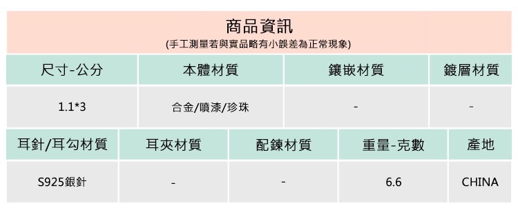 ◆合金飾品一經使用可能隨時間失去光澤或褪色,此為正常物理現象,妥善使用保存可延長飾品壽命。