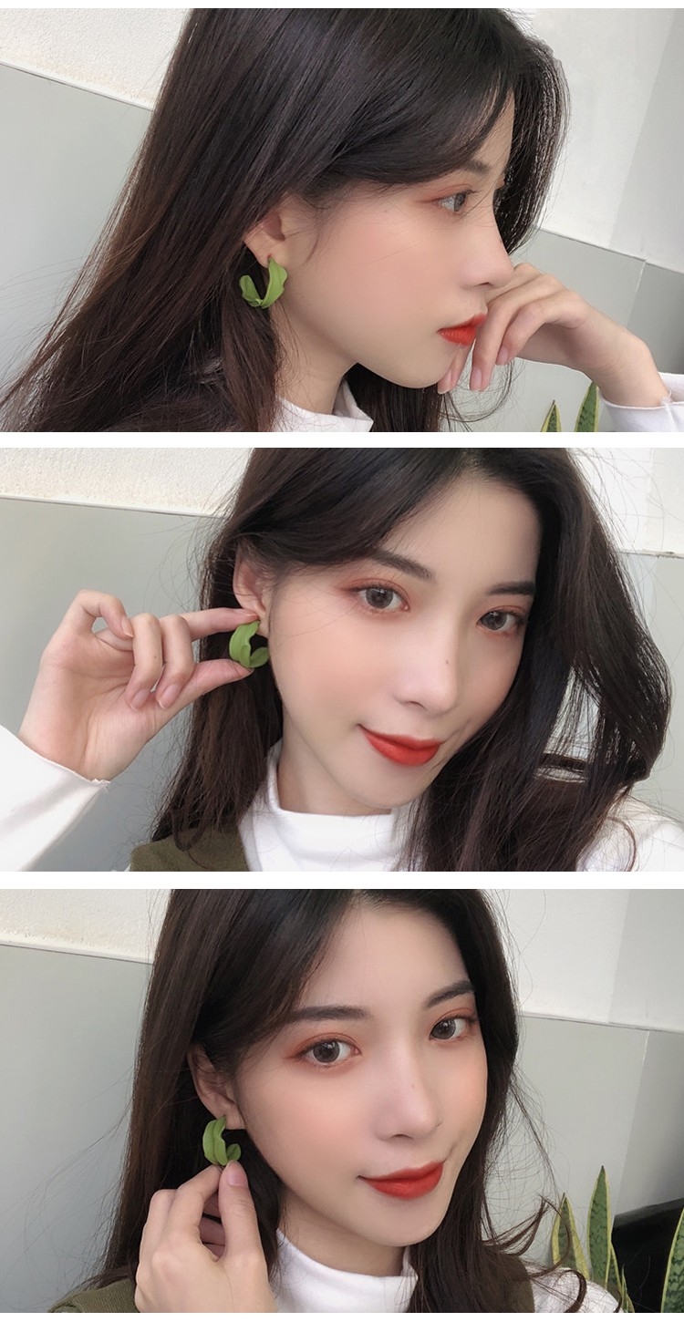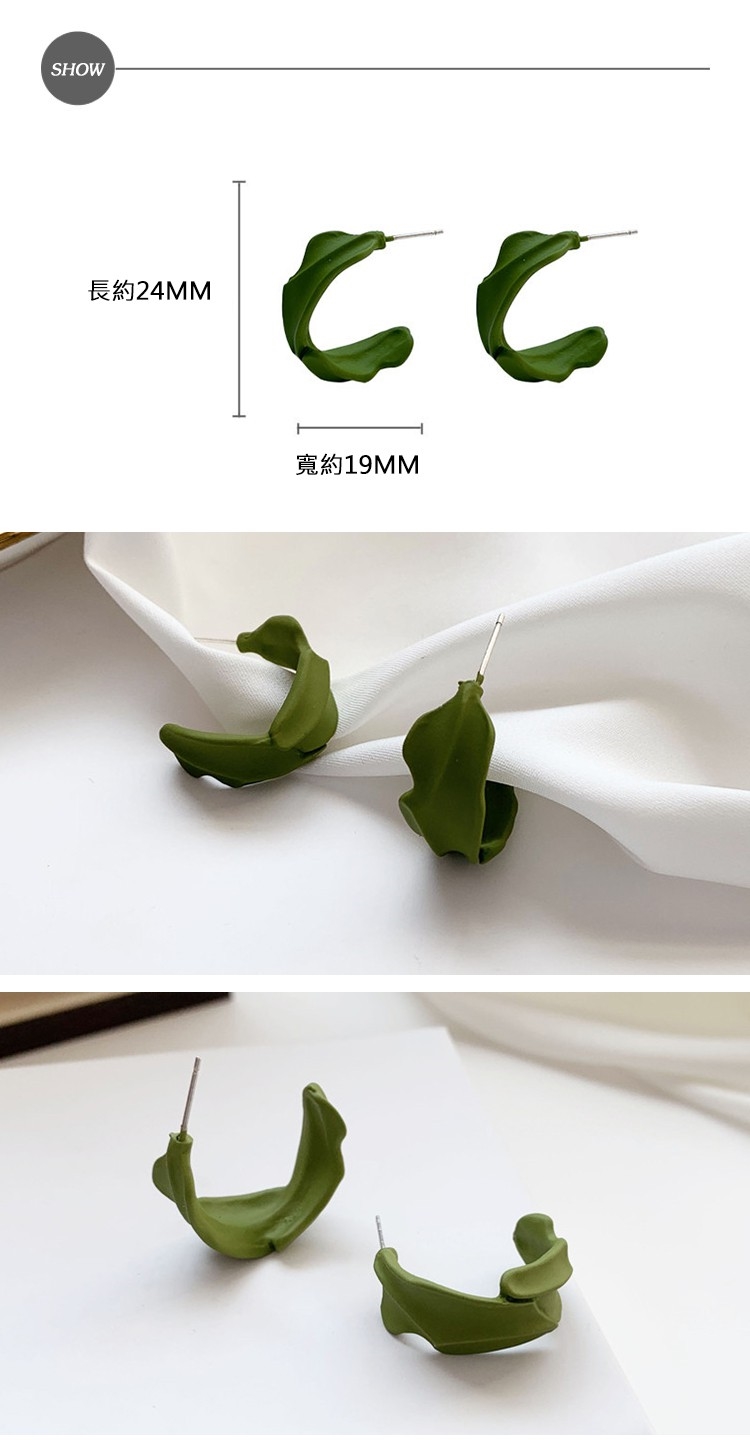 【INES】韓國設計S925銀針清新抹茶色復古綠葉造型C圈耳環
