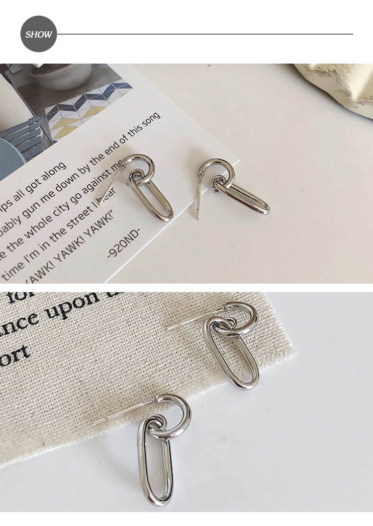 【00:00】韓國設計S925銀針金屬幾何雙圈簡約造型耳環