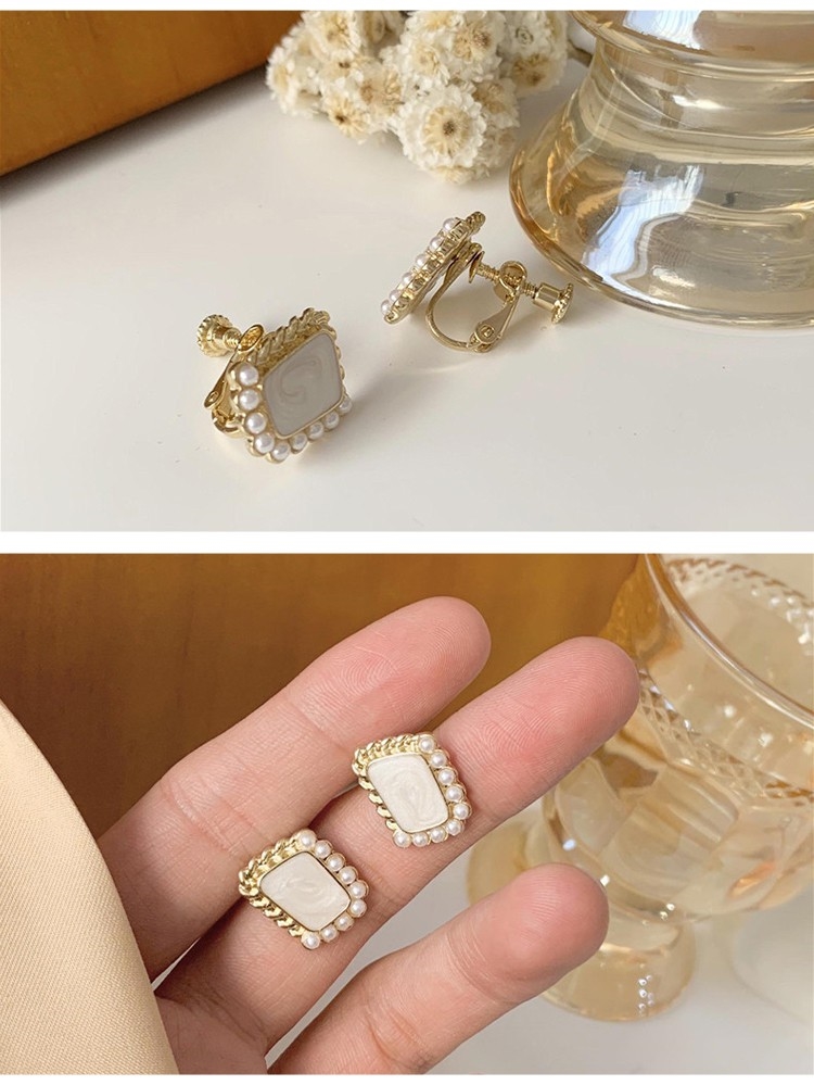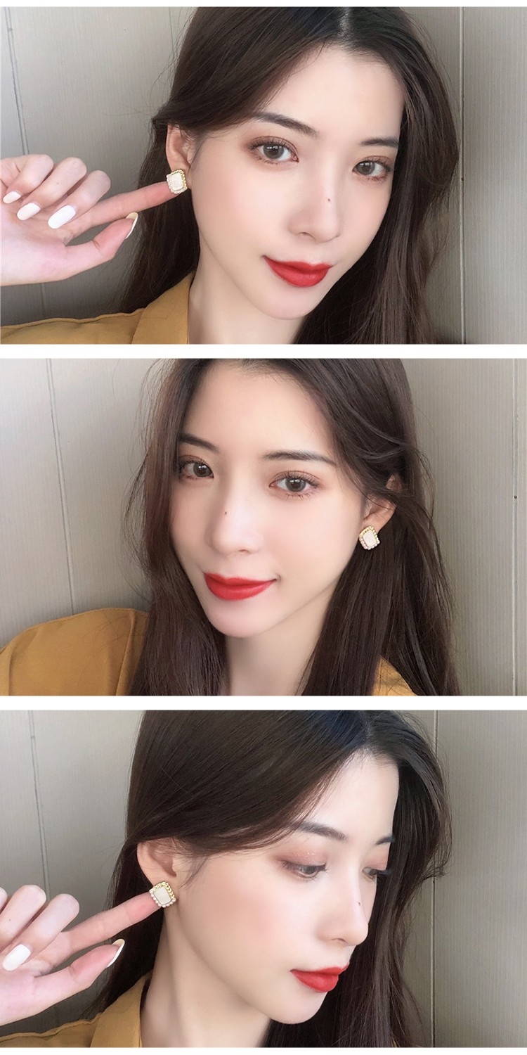 【INES】韓國設計S925銀針法式優雅幾何方型滴釉寶石珍珠耳環