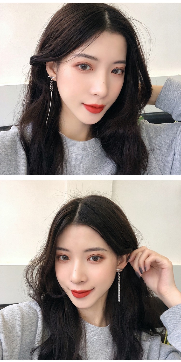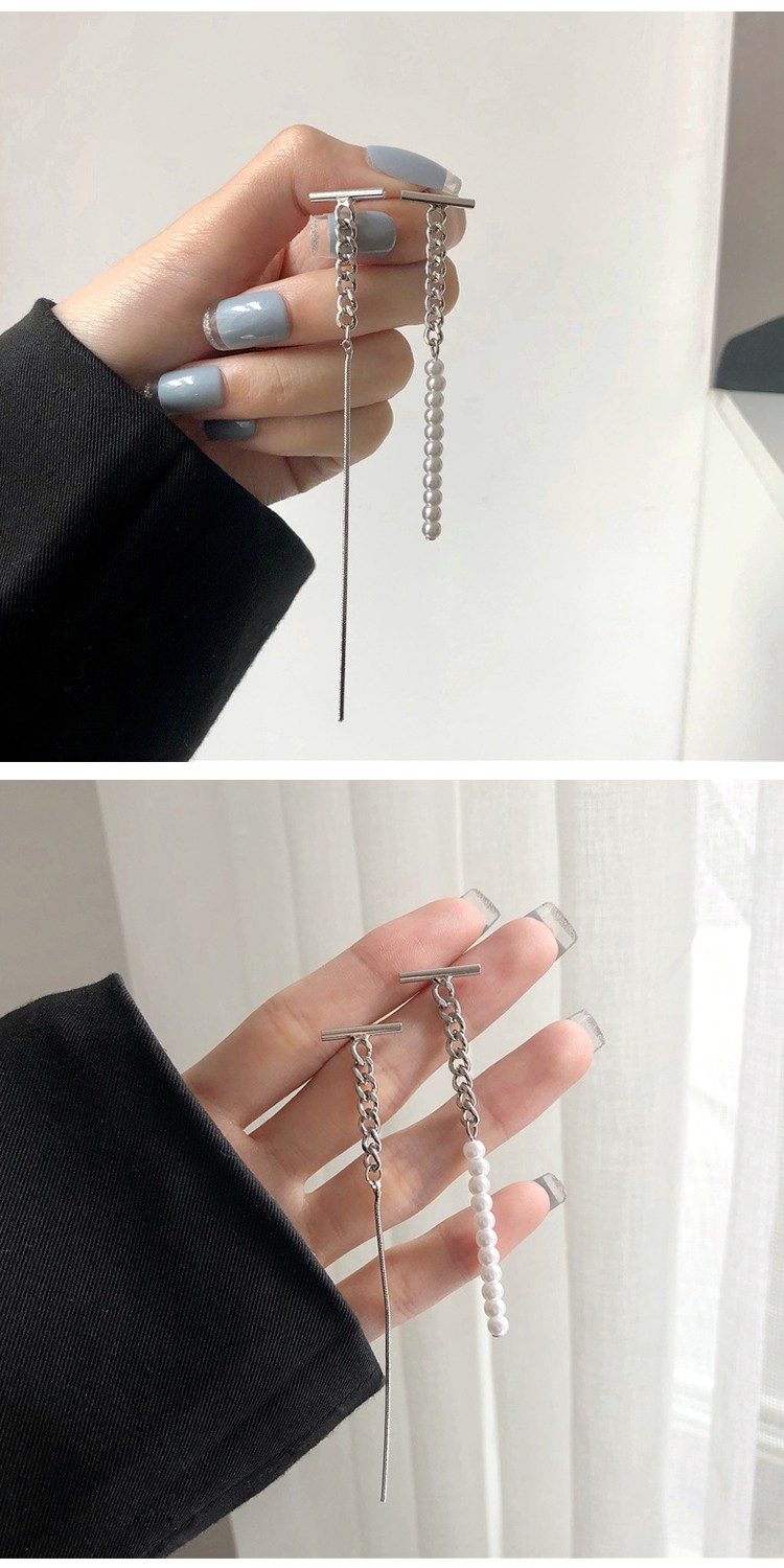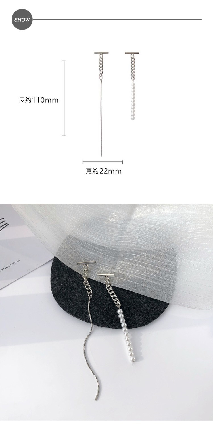 【00:00】韓國設計S925銀針瘦臉效果不對稱長鍊珍珠耳環