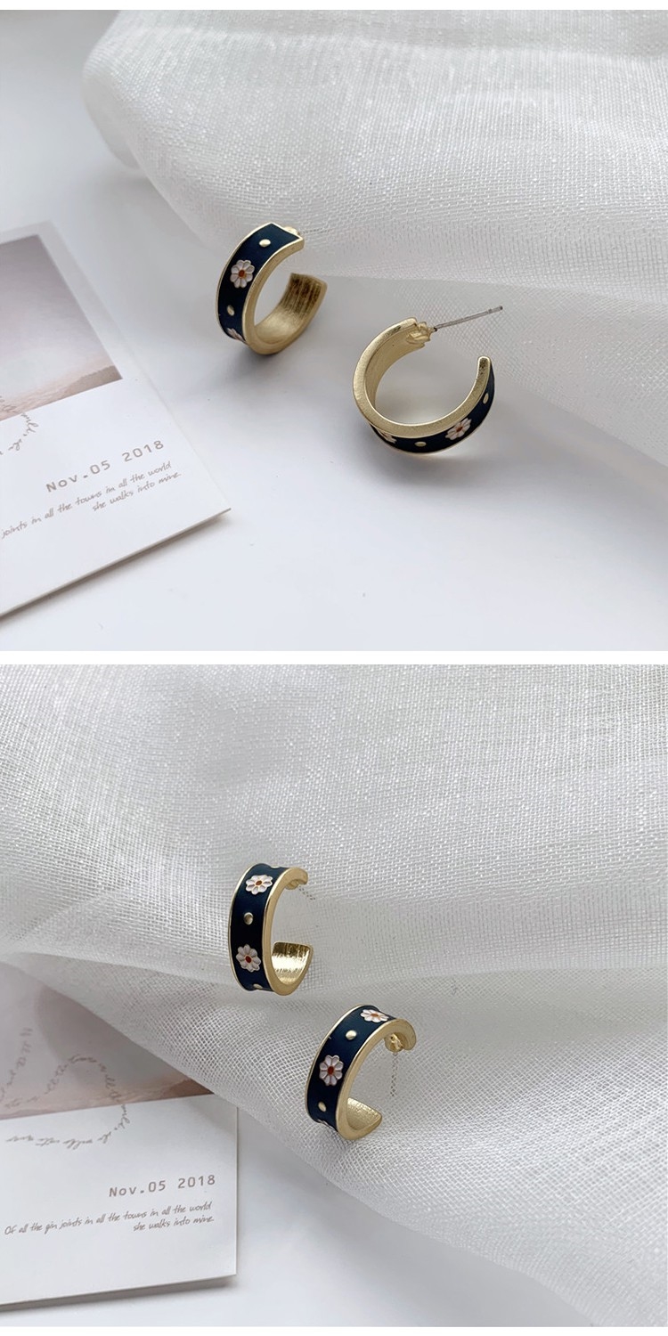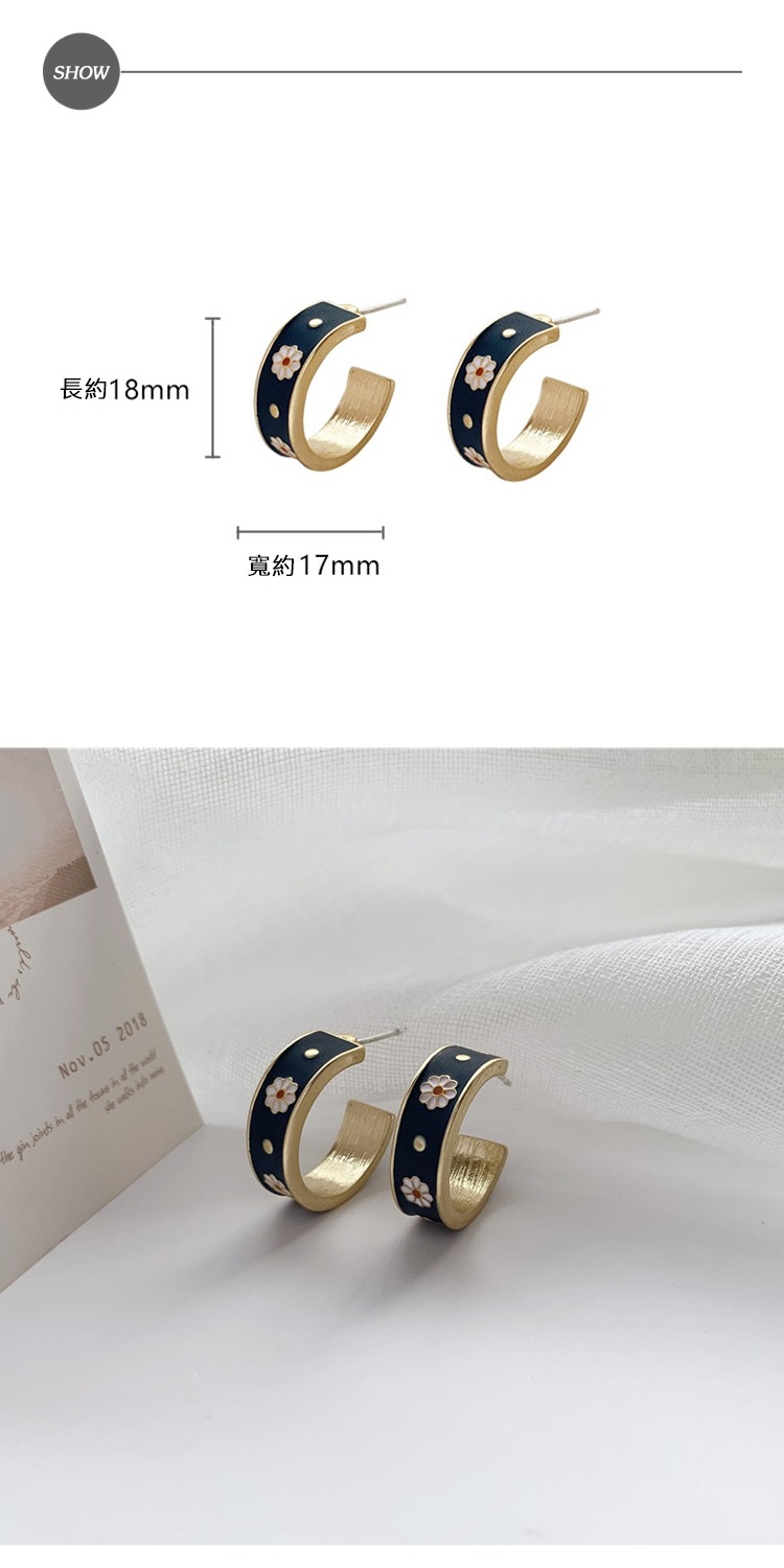 【INES】韓國設計S925銀針優雅復古小雛菊滴釉C圈耳環
