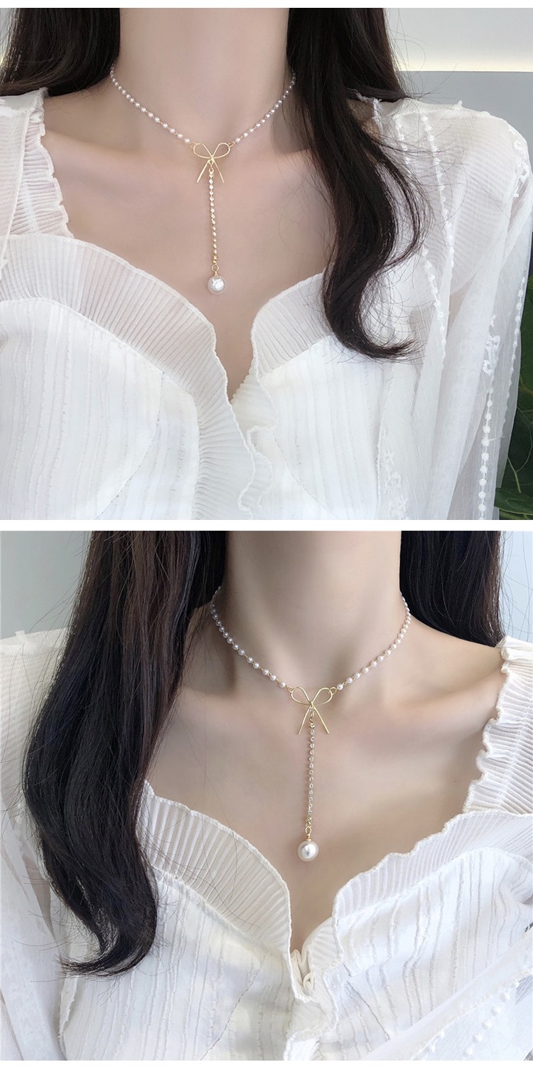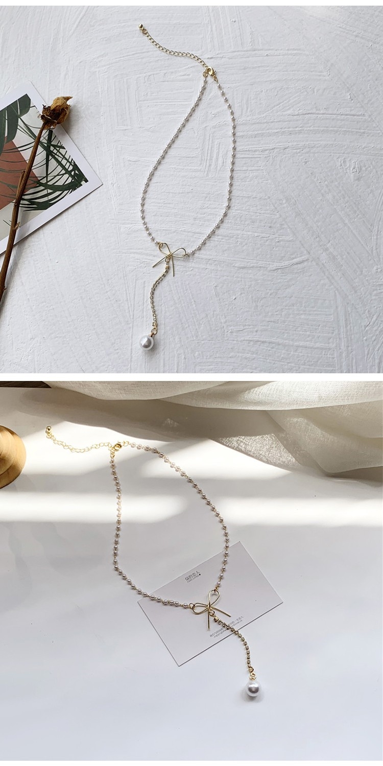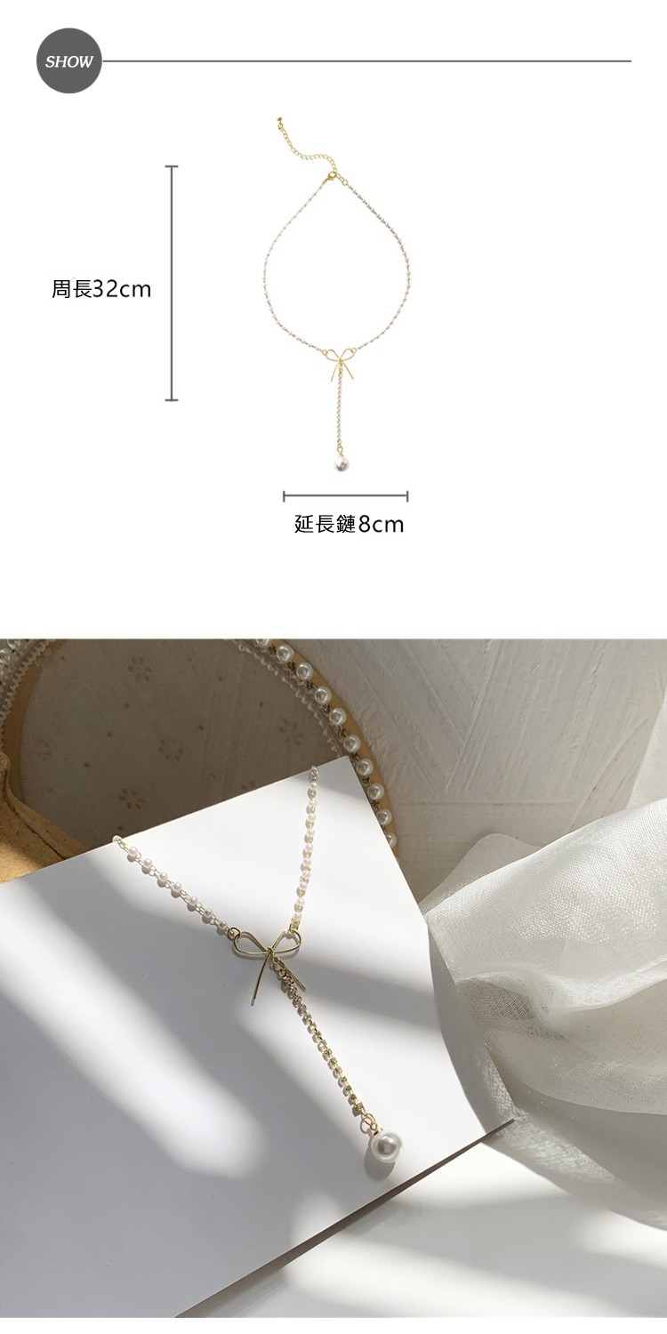 【MISS KOREA】韓國設計設計感蝴蝶結氣質珍珠項鍊