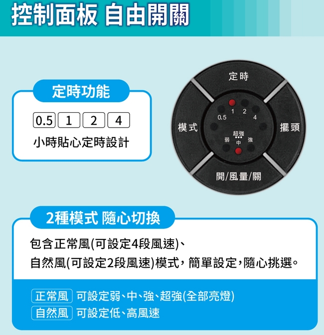 ◎4段定時模式(0.5、1、2、4小時定時功能)