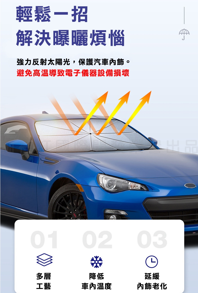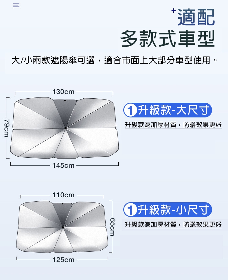 3.若要遮陽傘完全符合您愛車前擋風玻璃尺寸,建議您另外訂做才能達到您要的效果