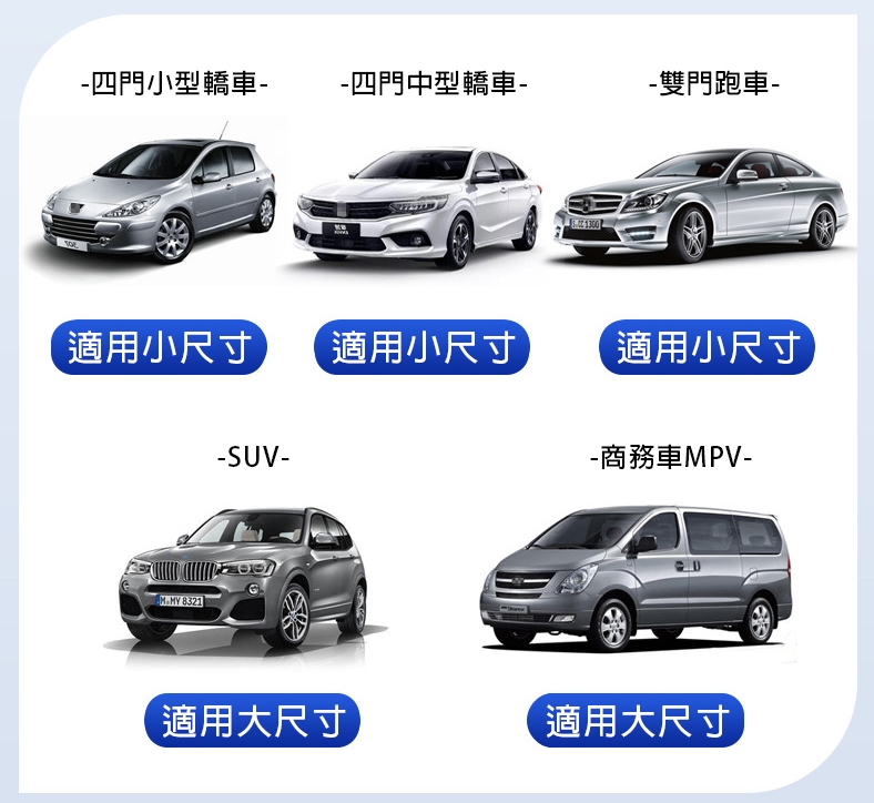 1.轎車款建議購買小尺寸、休旅車建議購買大尺寸