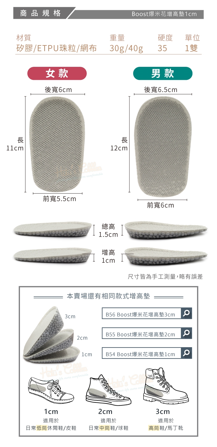 男款 長12cm 後寬6.5cm 前寬6cm 總高1.5cm 增高1cm