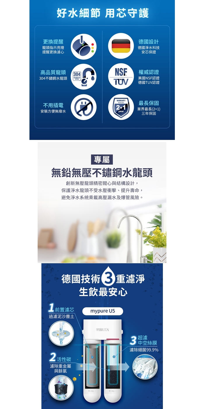 ◆ 打開水龍頭就有生飲等級的過濾好水,mypure U5系統讓出水流速更高,無須加壓馬達、不插電、不排廢水、沒有隔夜水煩惱,保證新鮮