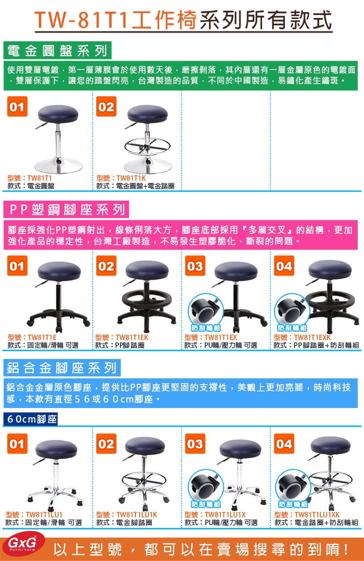 ※本款TW--81T1 圓凳工作椅,提供多種款式可選,可以依據需求購買