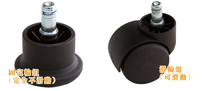 本款有兩種輪組可選,訂購前請注意,左圖為固定輪(不會滑動,輪子為平面),右圖為一般PP尼龍輪(可推動)。