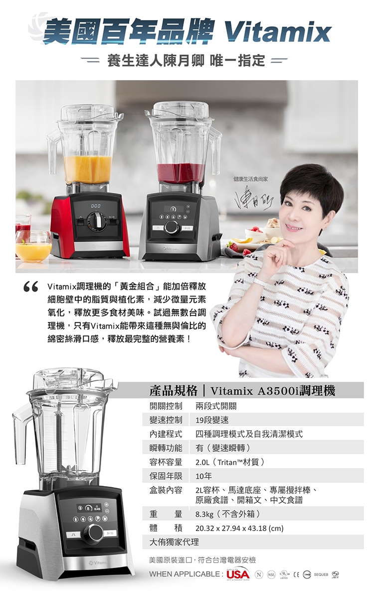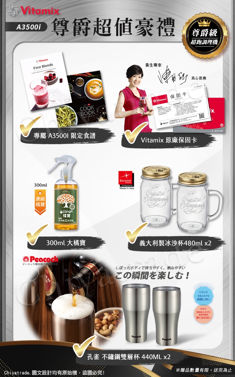 產品配件: 2.0L攪拌杯、專屬攪拌棒、馬達底座、原廠食譜書