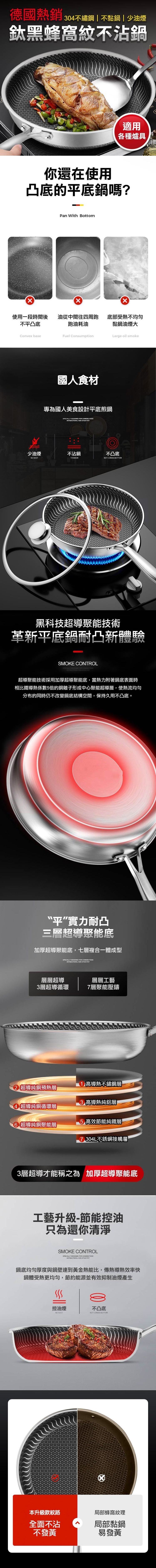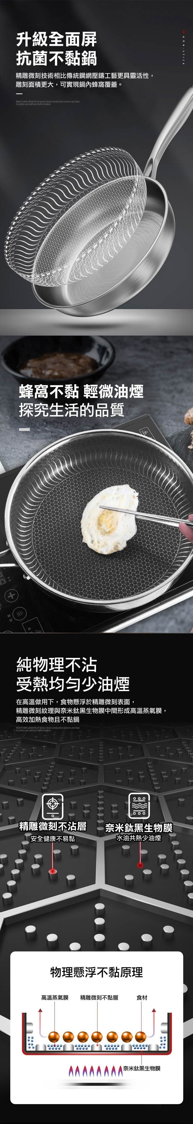 德國熱銷鈦黑蜂窩紋不沾鍋 全新 滿花紋路 設計款 採用全新蜂巢懸浮設計,不懼鍋鏟,做什麼菜都安心;