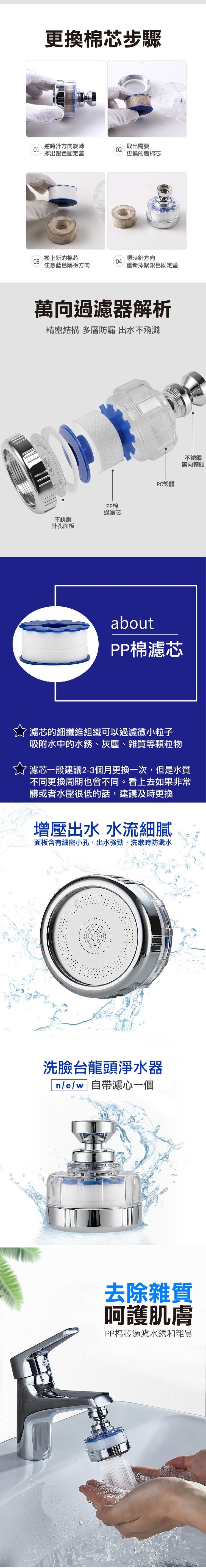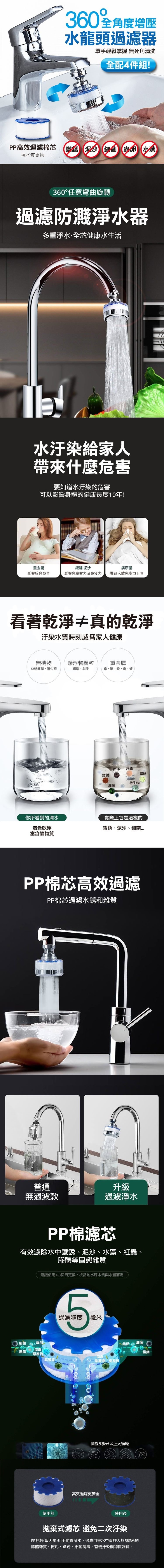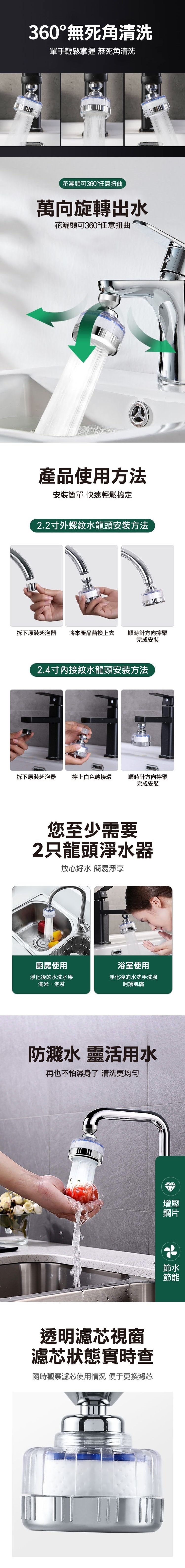 全新升級款 省水、增壓、過濾一次搞定 .PP過濾芯,透明殼髒污看得見 .萬向360度旋轉可調