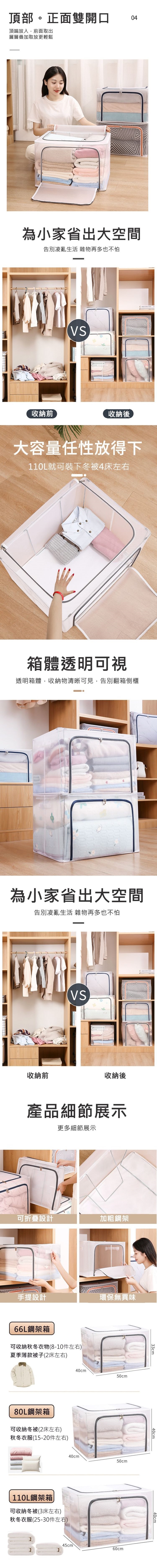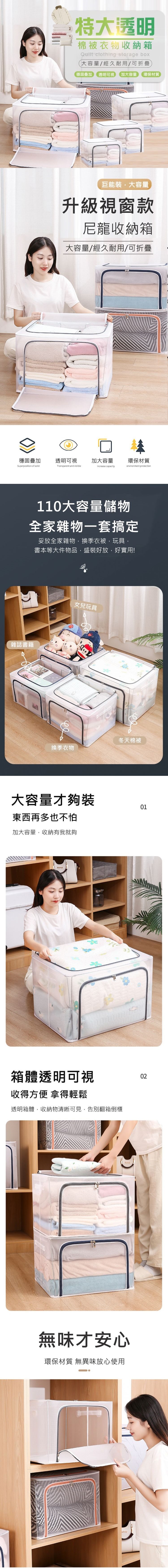 新升級款 特大透明棉被衣物收納箱,加厚加大材質 透明衣服收納箱,66L/80L/110L,大容量,上方、前方雙開,兩側提手好拿,可折疊不占空間。透明箱體,內容物清楚可視,方便找物。