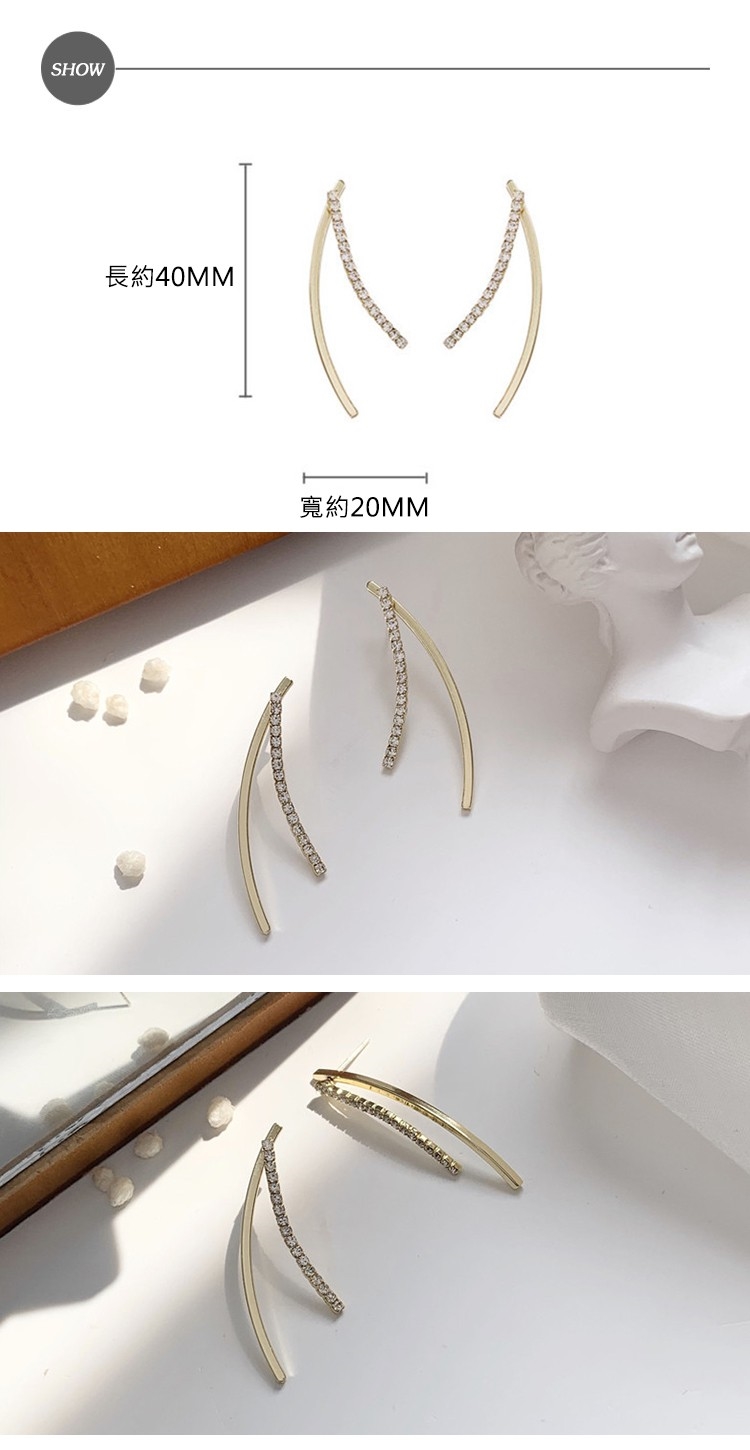 【MISS KOREA】韓國設計S925銀針兩戴法簡約線條美鑽氣質耳環