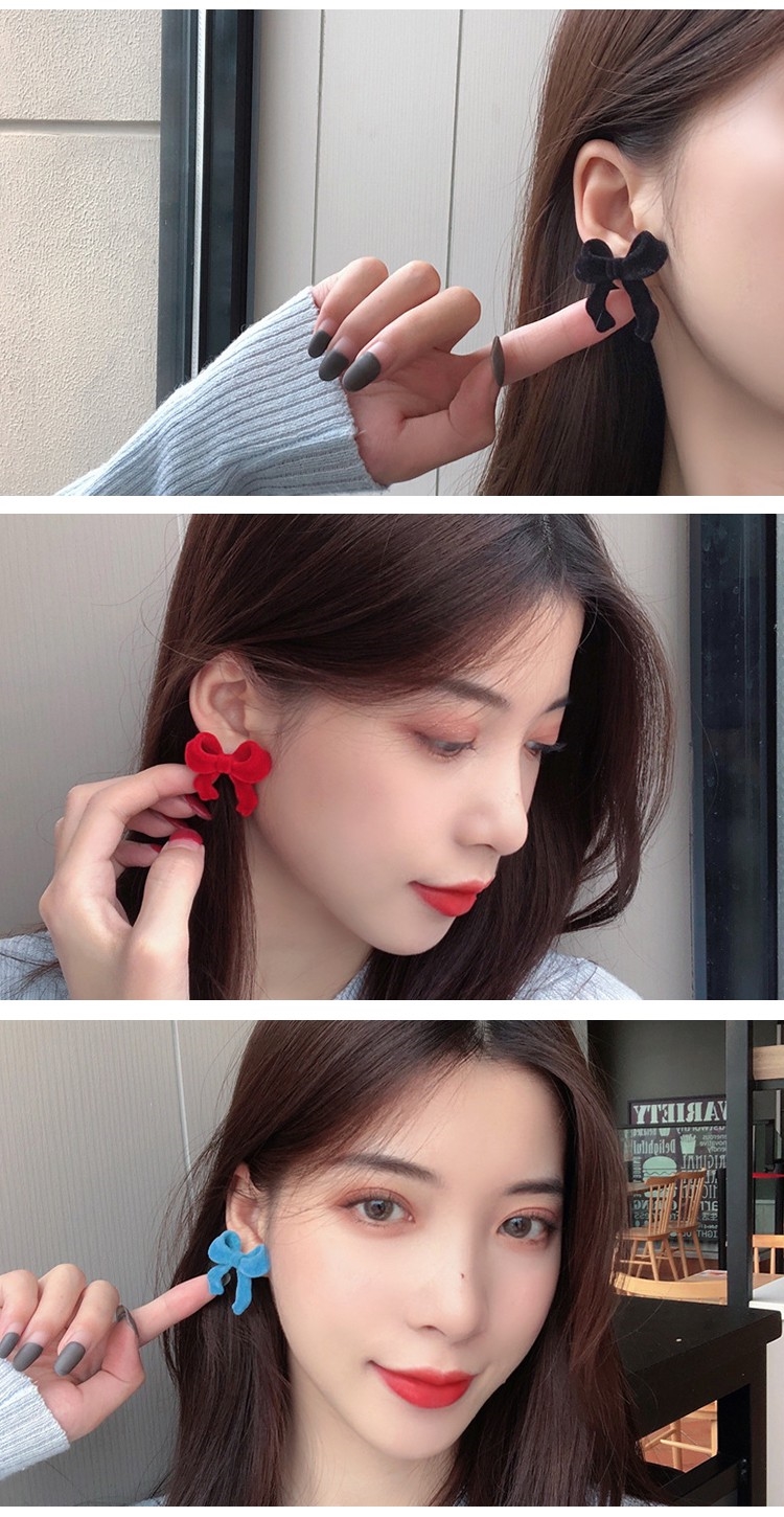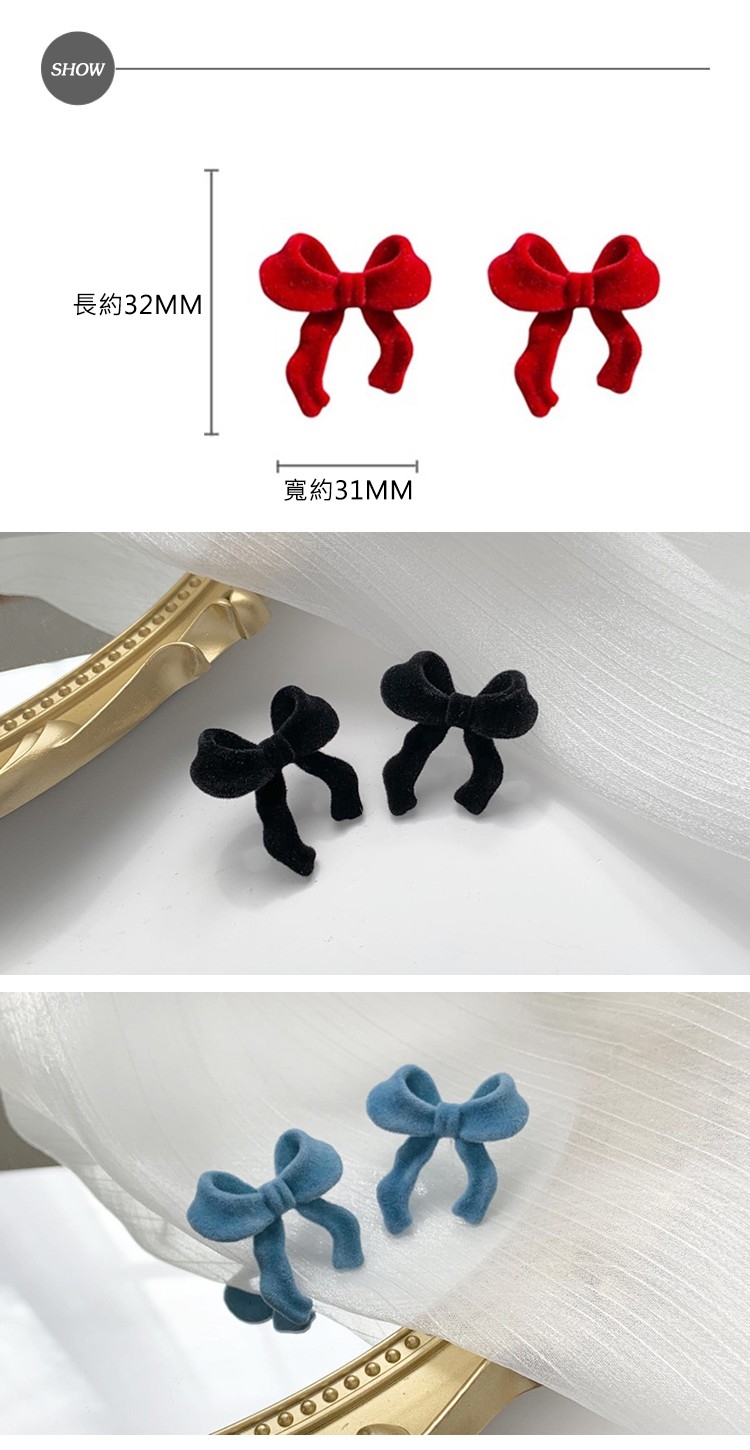 【MISA】韓國設計S925銀針絲絨蝴蝶結造型耳環 (3色任選)