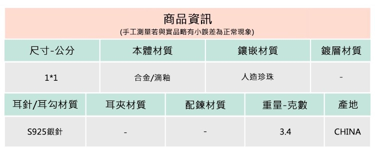 ◆合金飾品一經使用可能隨時間失去光澤或褪色,此為正常物理現象,妥善使用保存可延長飾品壽命。