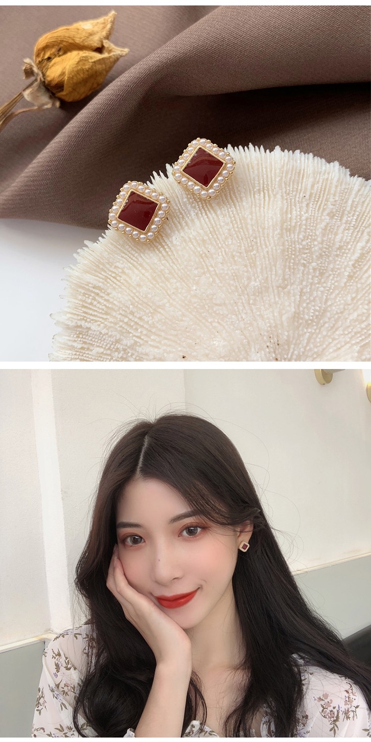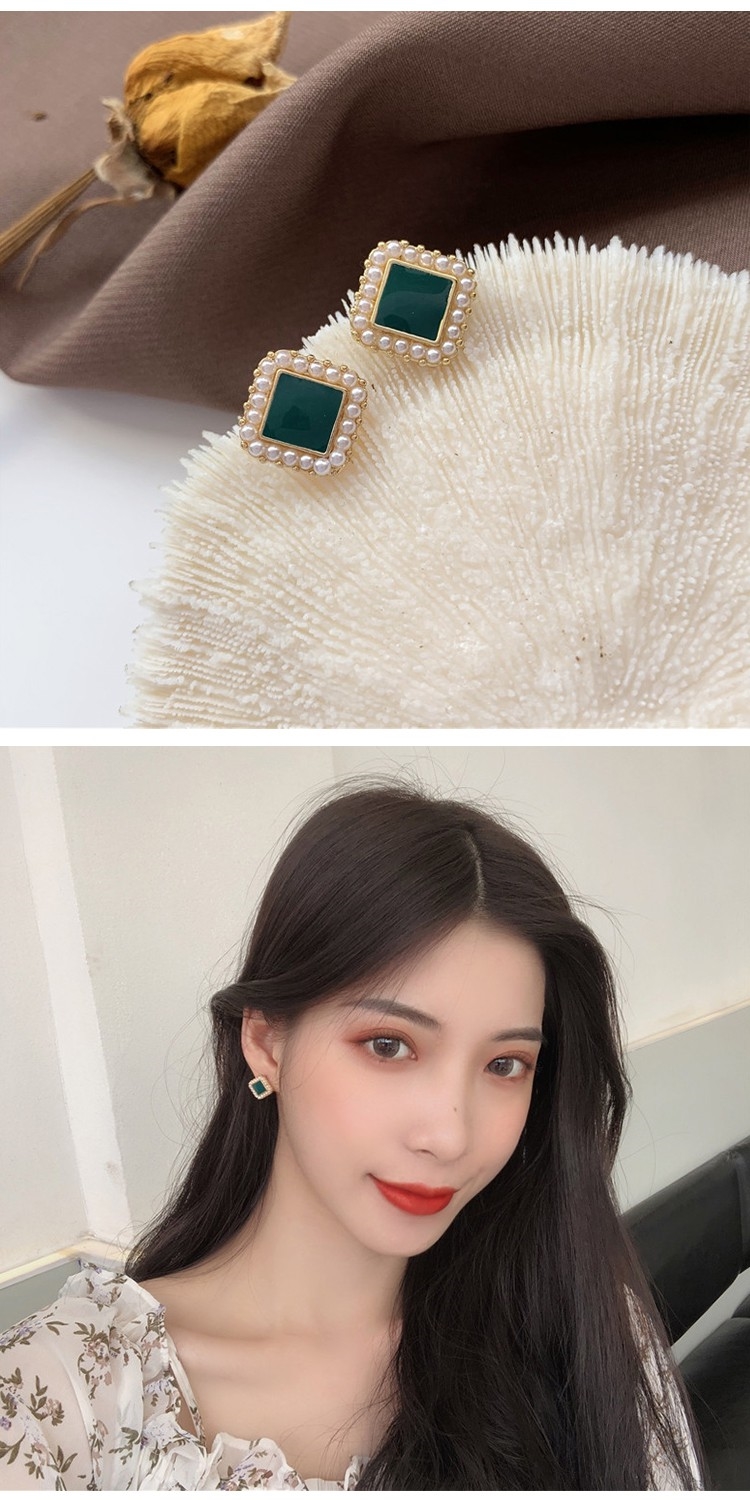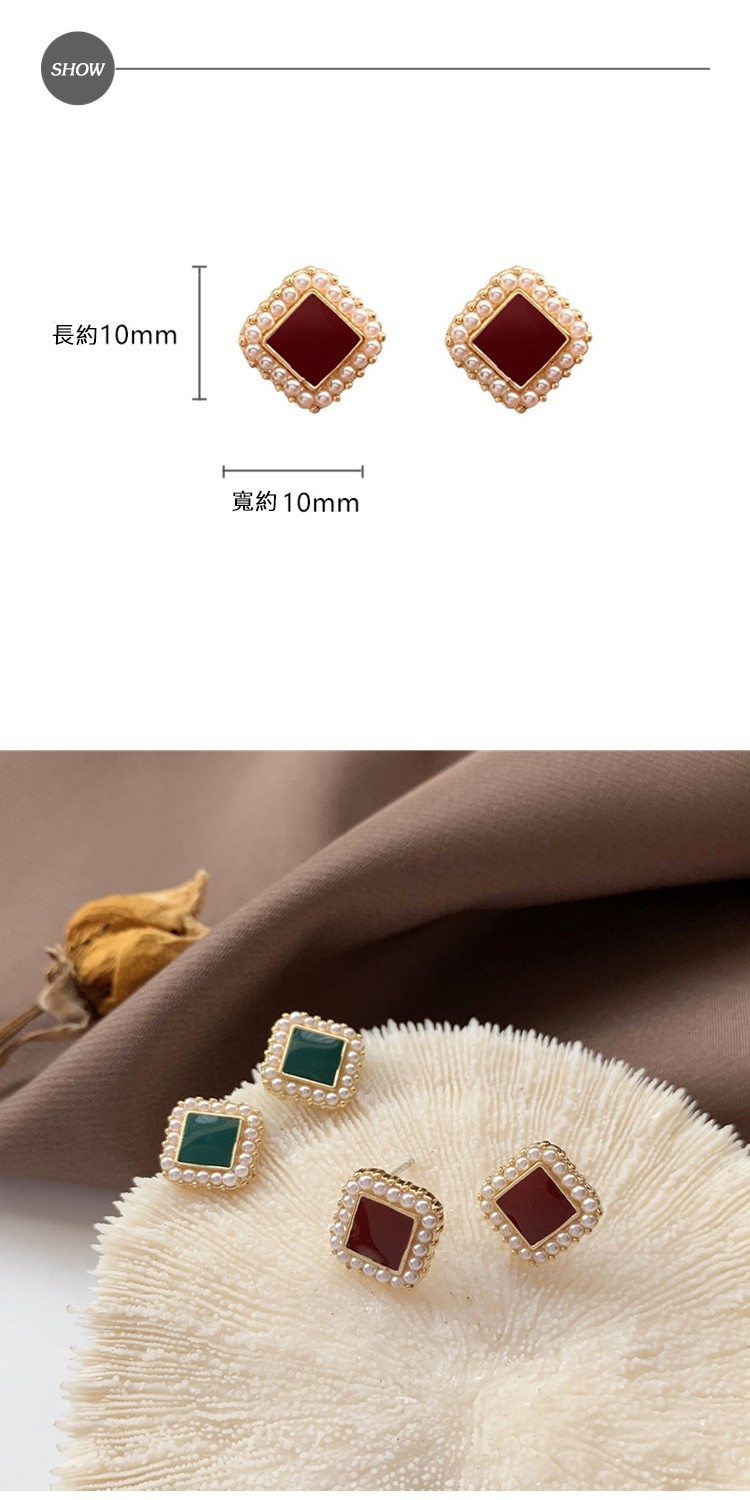【INES】韓國設計S925銀針氣質方塊珍珠綴邊造型耳環 (2色任選)